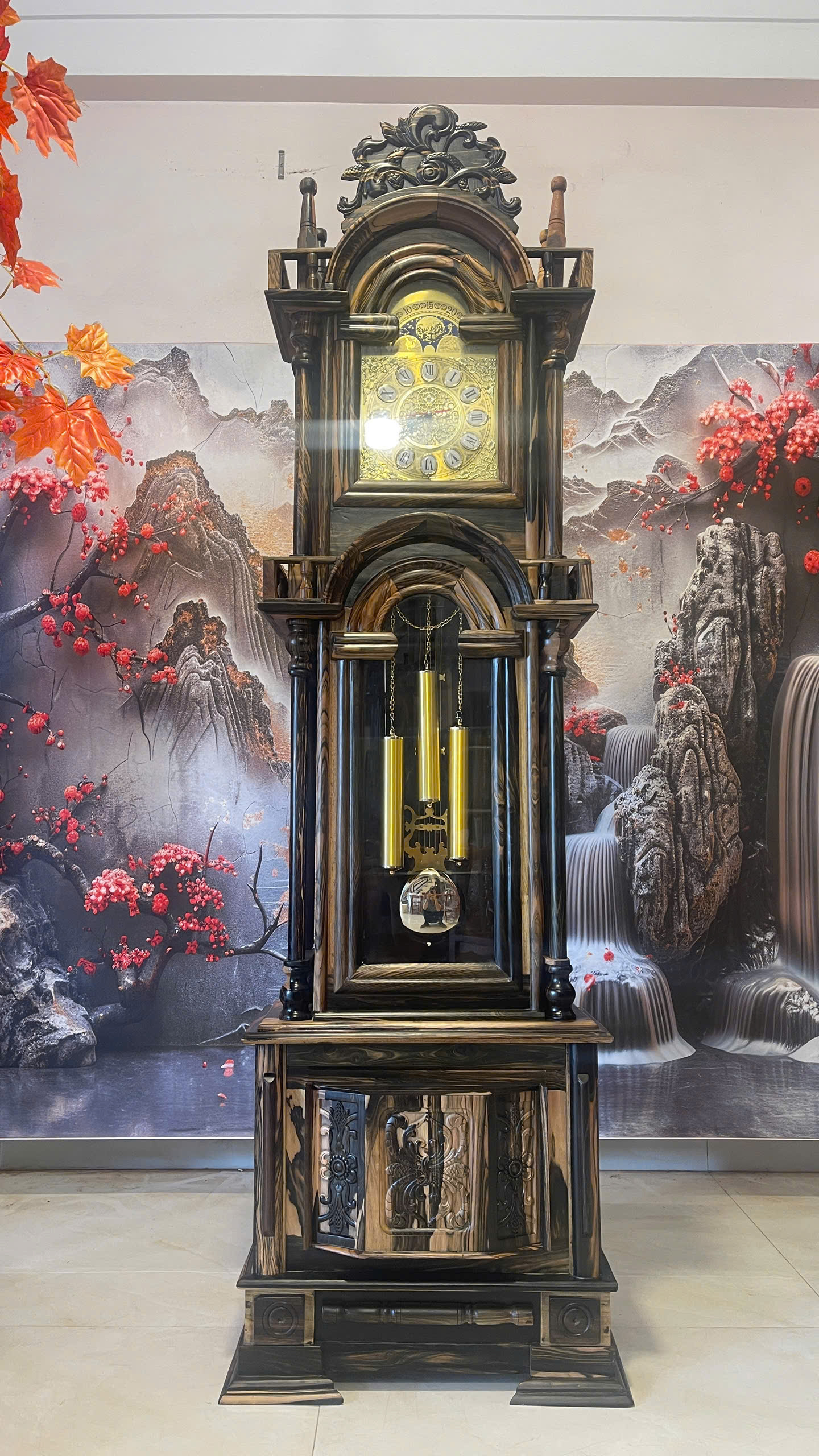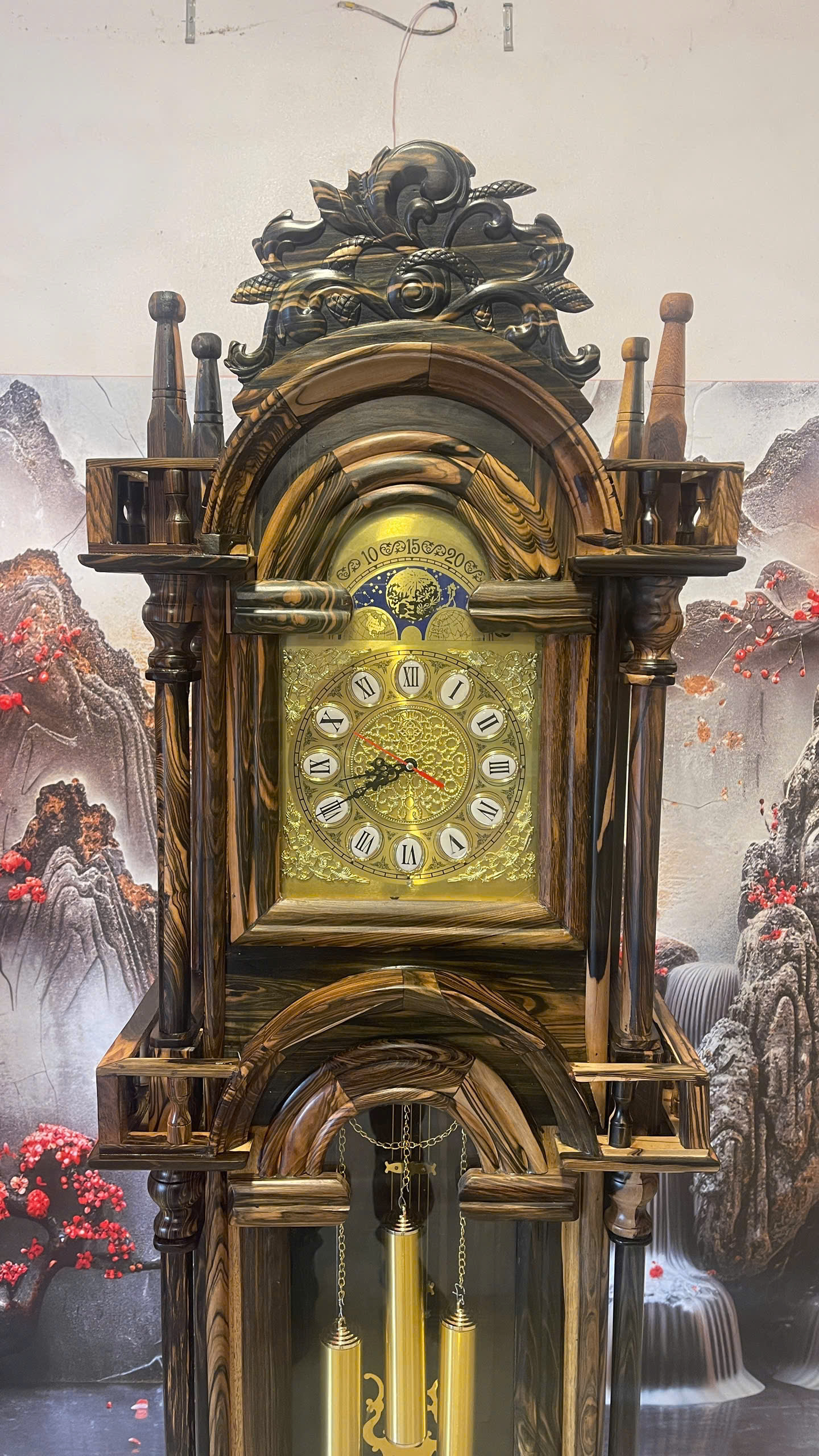 🎶 Bộ máy vận hành mượt – quả lắc & tạ đồng tạo điểm nhấn tinh tế.