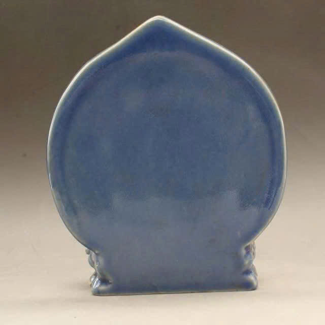 bức tượng Phật bằng gốm sứ, được tráng men xanh lam hoặc xanh ngọc đồng nhất, với thiết kế dựa trên các mô típ cổ điển Trung Quốc.