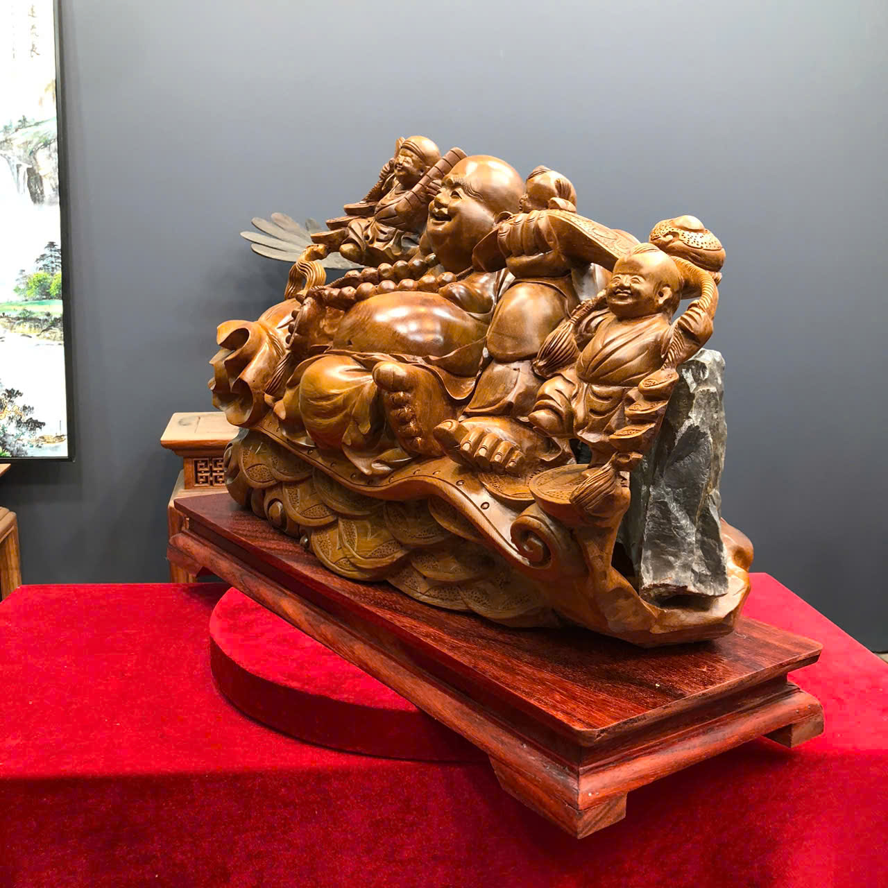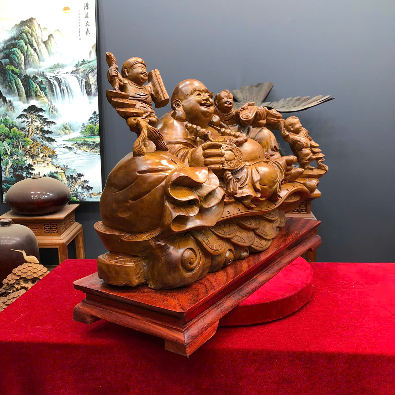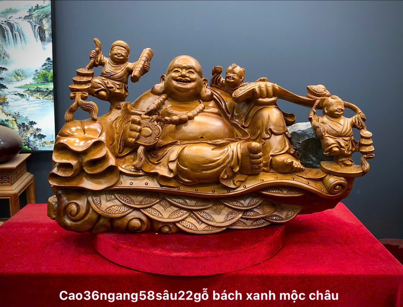 - Bàn làm việc/phòng khách: Đặt tượng Di Lặc gỗ bách xanh để thu hút tài lộc, giảm tranh cãi, mang lại hòa khí.