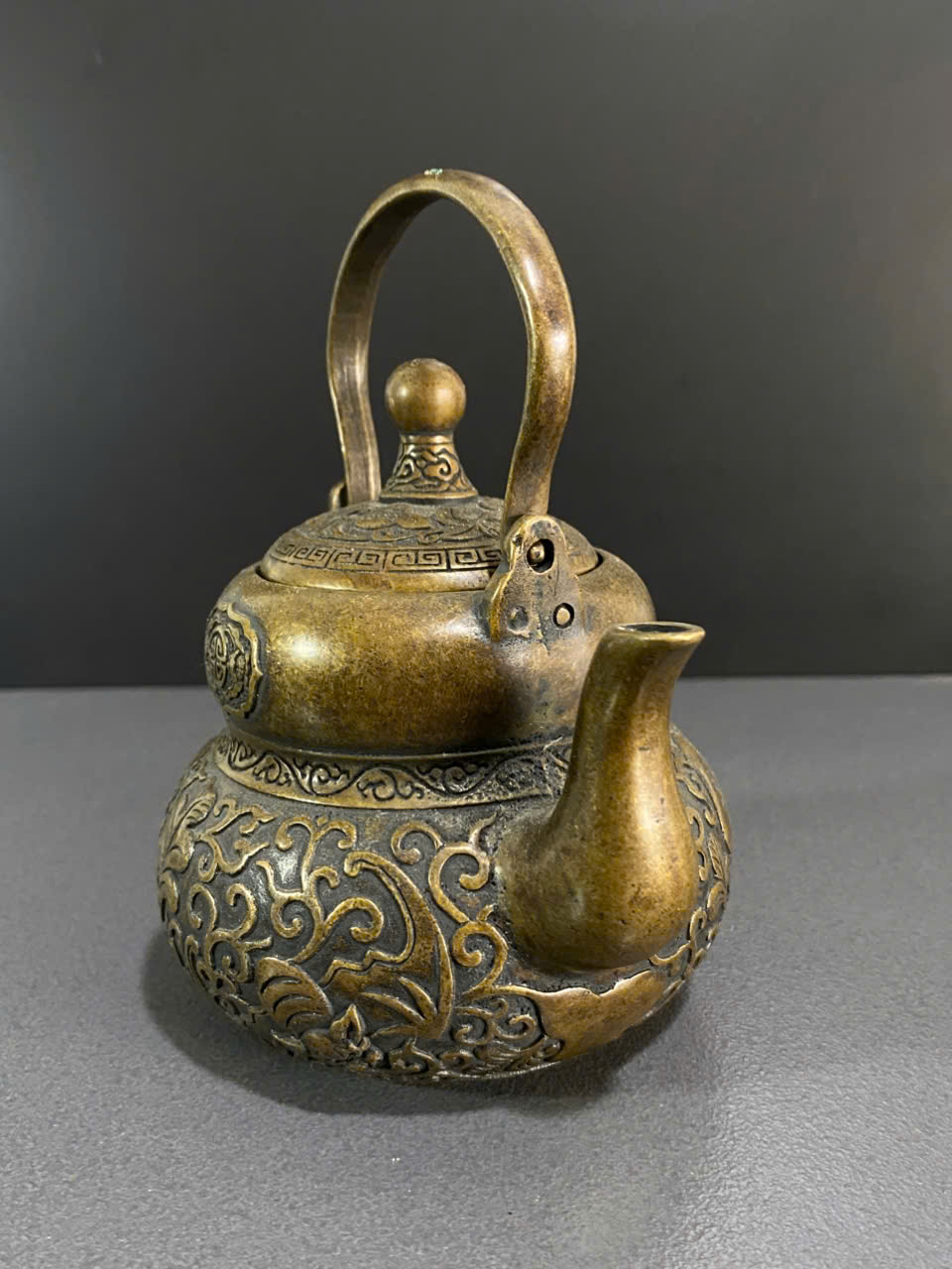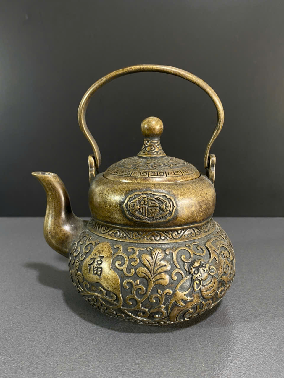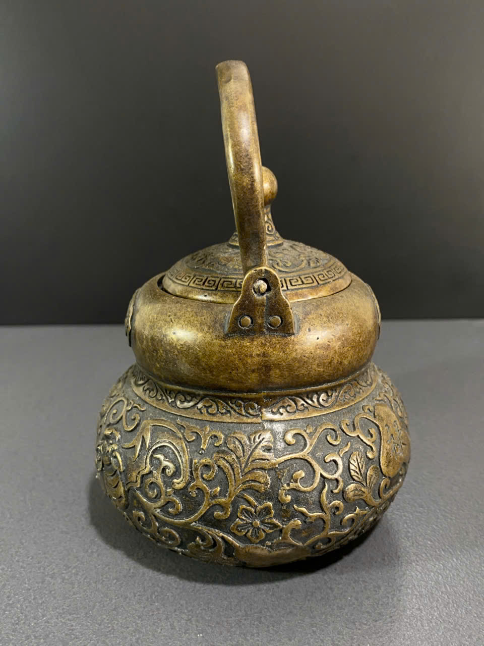 ẤM ĐỒNG HỒ LÔ 👉trạm hoa văn Phú quý 👉 tích nổi chữ phúc. Đẹp lạ. G/êm ạ