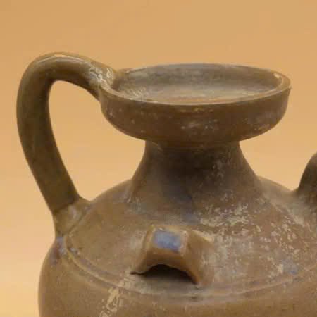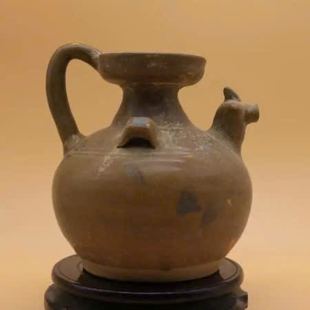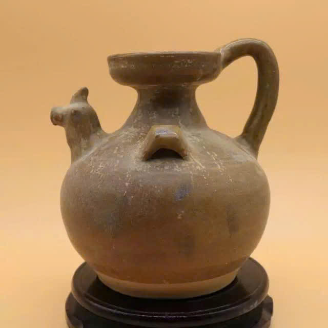 một ấm gốm cổ có vòi hình đầu gà, thường được gọi là “ấm vòi hình đầu gà” (chicken-head-spout ewer).