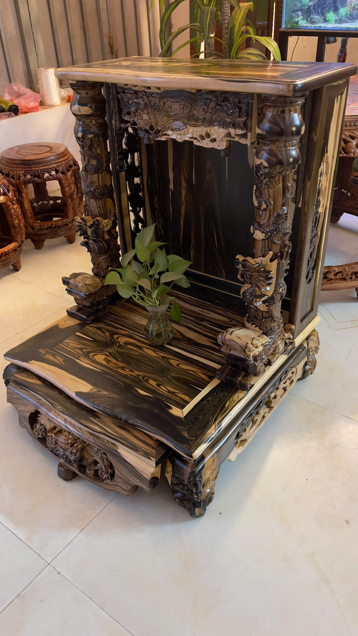 😍BÀN THỜ THẦN TÀI GỖ MUN HOA – ĐẲNG CẤP KHÔNG GIAN THỜ TỰ👍