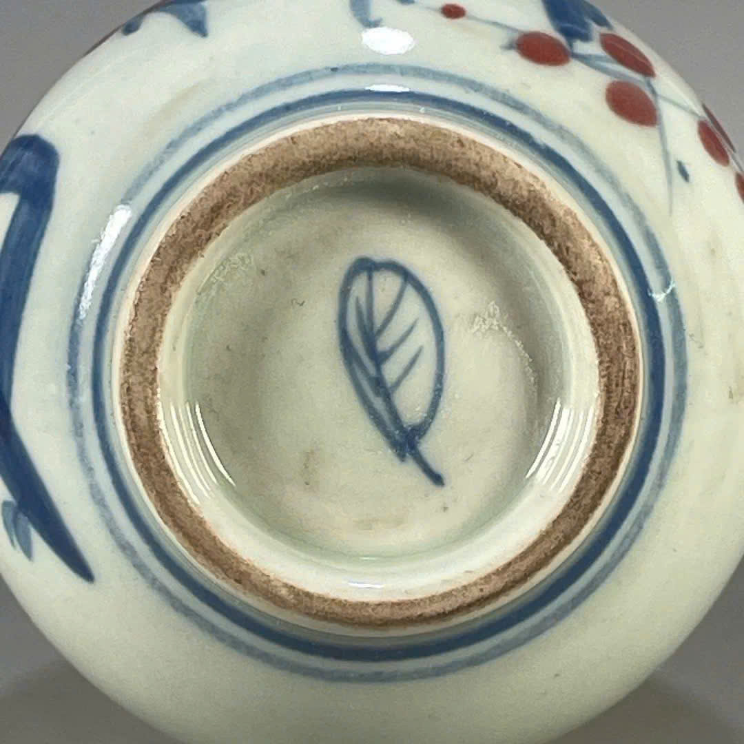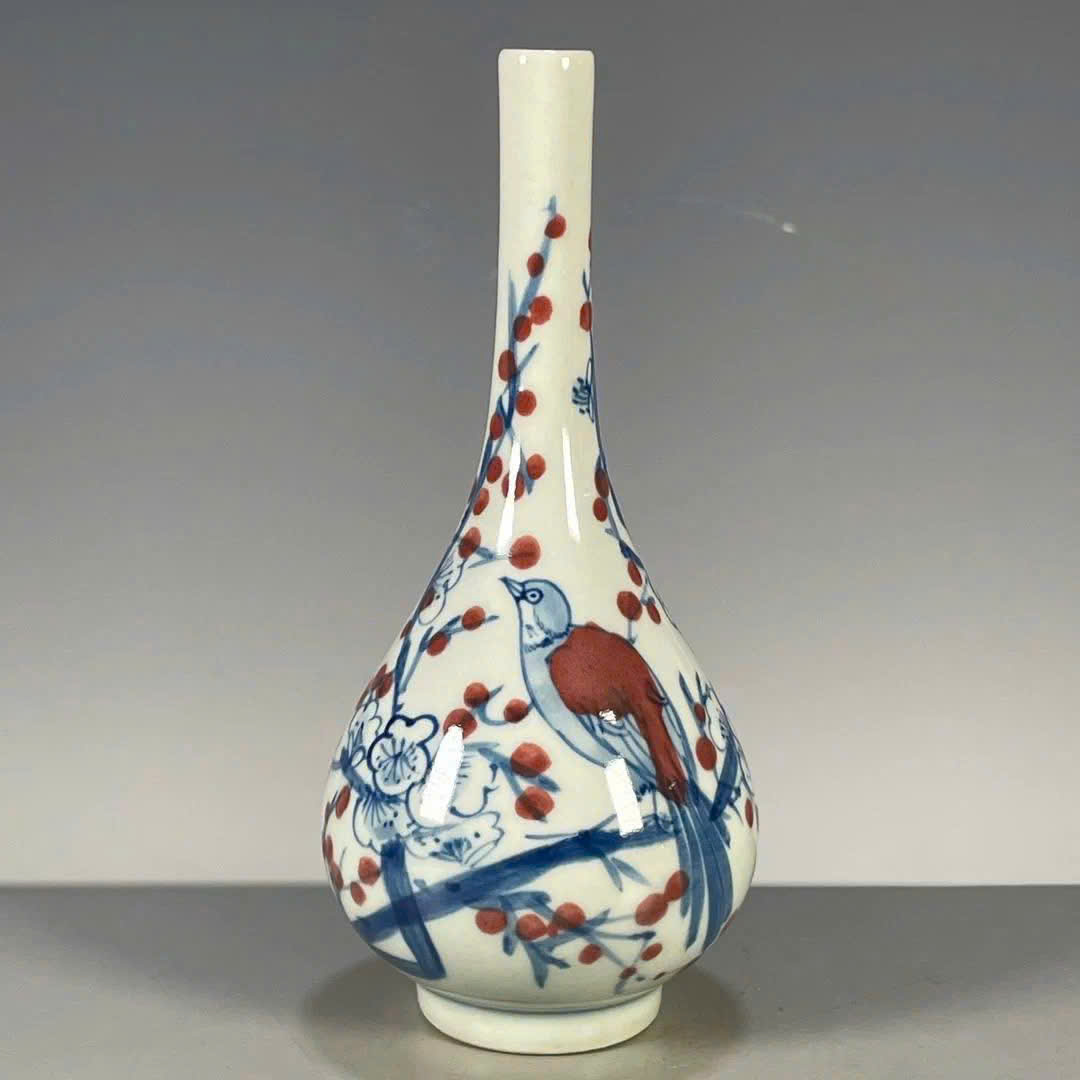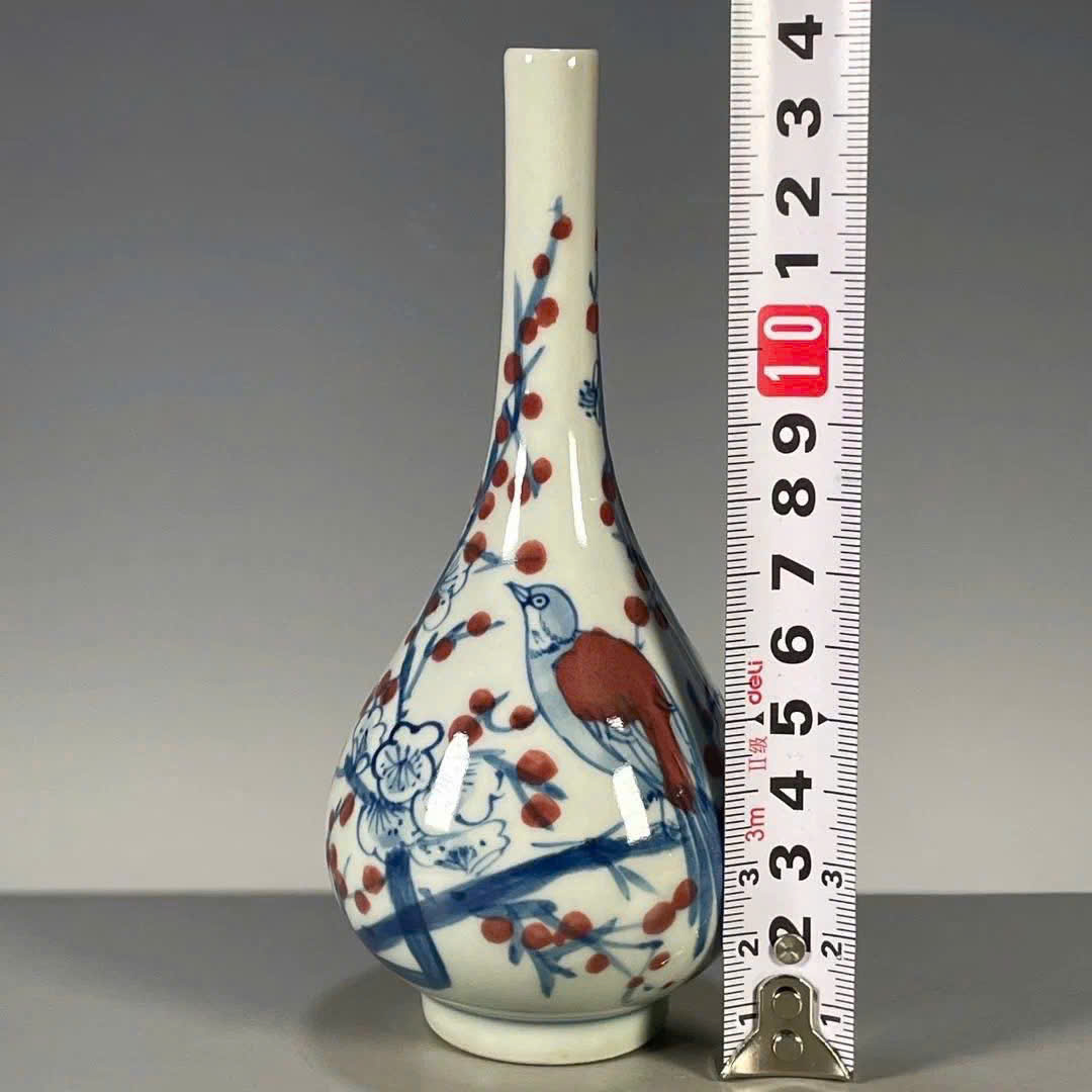 Bình dáng cổ, vẽ tay thủ công, men lam phối men đỏ cực hiếm.