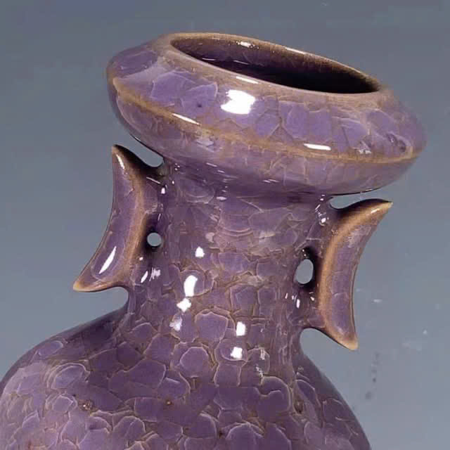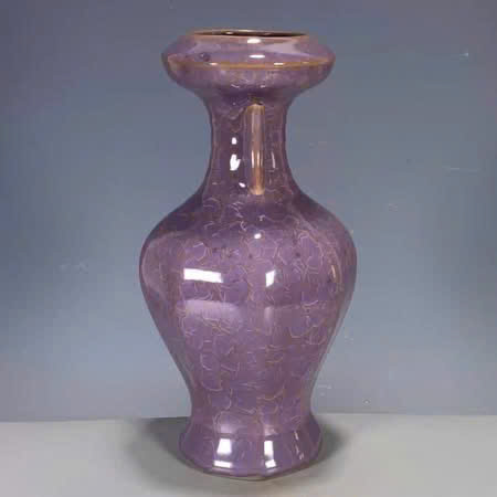Bình gốm tráng men màu tím này là một loại đồ gốm sứ châu Á, nhiều khả năng có nguồn gốc từ Trung Quốc, thuộc dòng men ngọc hoặc men màu tím (lavender glaze) nổi tiếng.