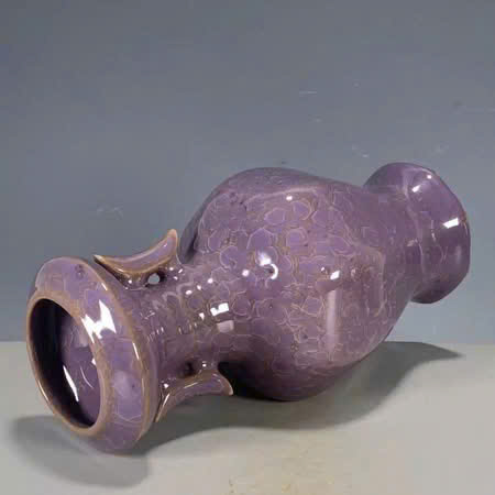 • Men gốm: Điểm nổi bật nhất của bình là lớp men dày, đục, có màu tím tử sa hoặc màu hoa oải hương với các đốm và vệt màu đậm nhạt khác nhau. Hiệu ứng màu sắc này đạt được nhờ kỹ thuật nung đặc biệt, thêm oxit đồng vào men và nung trong môi trường khử oxy ở nhiệt độ cao, tạo ra các biến đổi màu ngẫu nhiên và độc đáo.