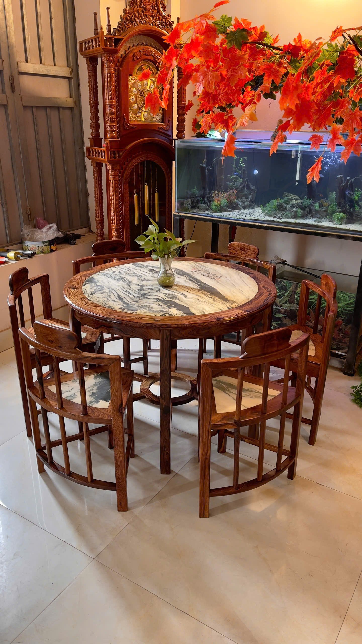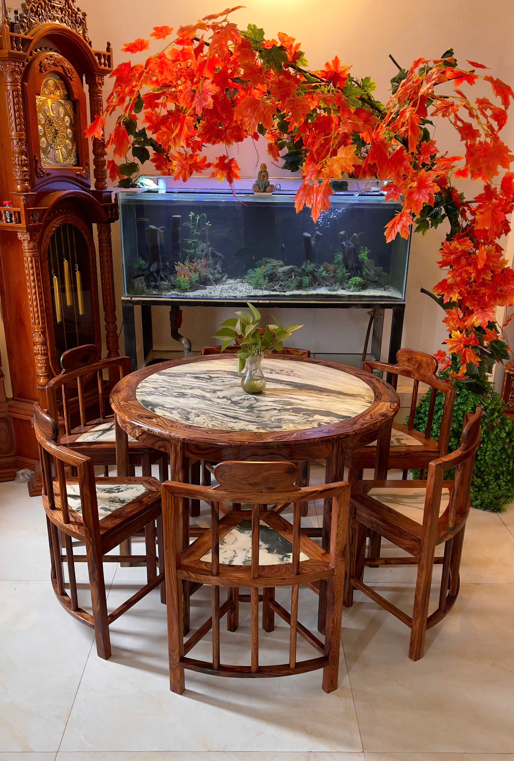 🔥 BỘ BÀN GHẾ THU GỌN GỖ CẨM VIỆT MĂT BÀN VÀ GHẾ BẰNG ĐÁ CẨM THẠCH– TIỆN LỢI, SANG TRỌNG 🔥