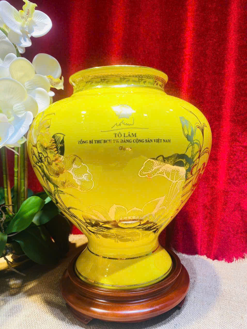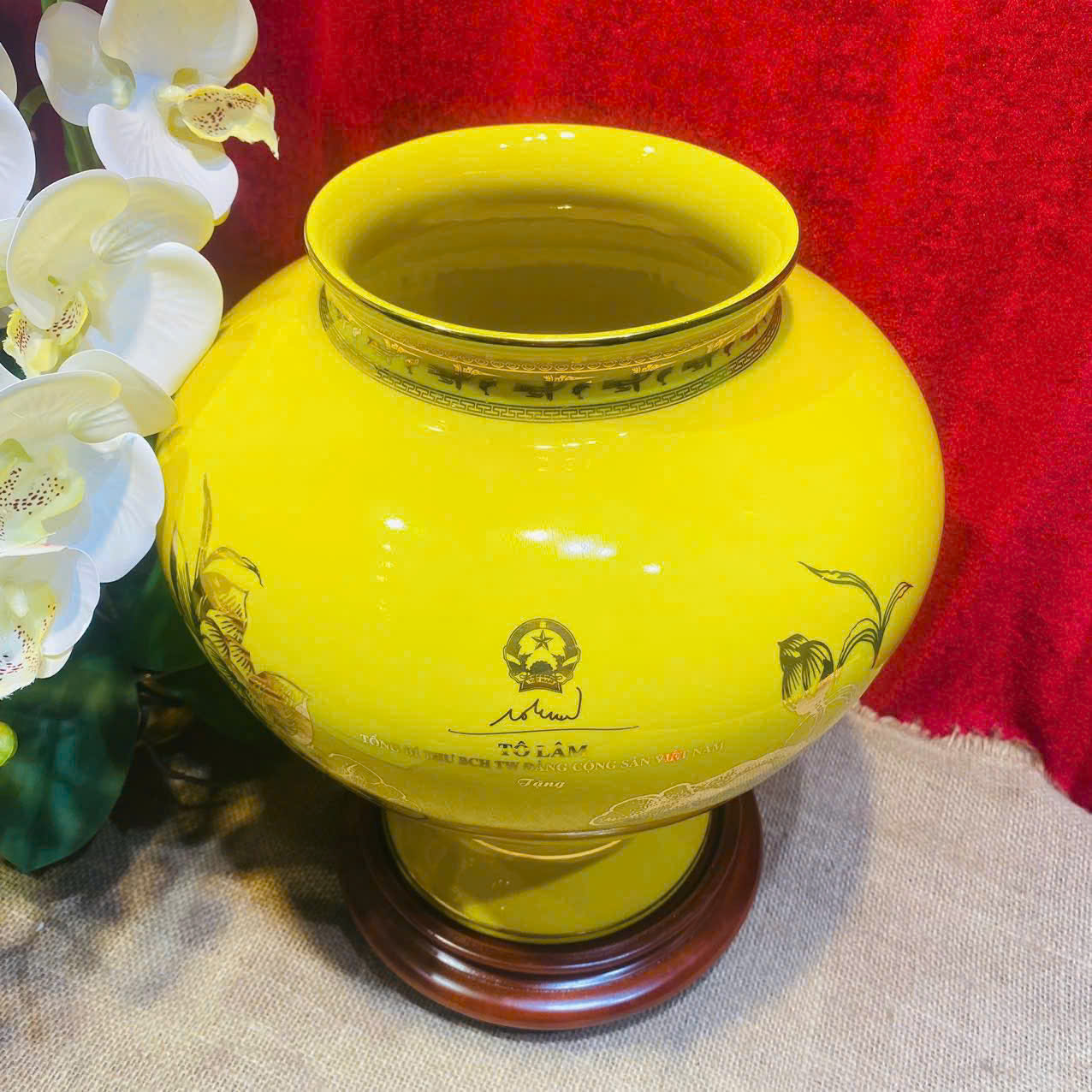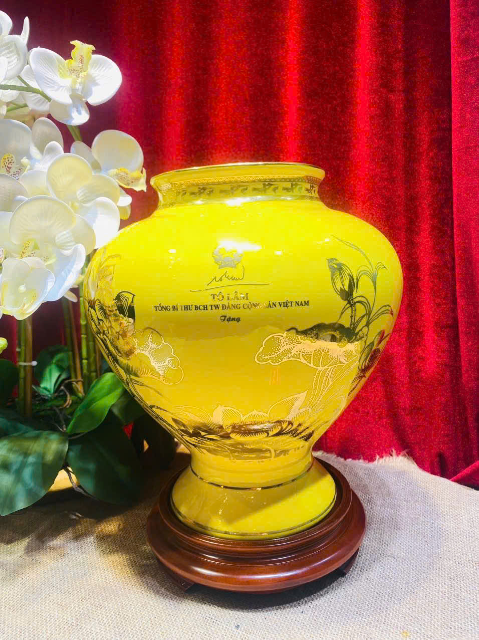 + Free ShippingBình hút lộc vẽ vàng 24k logo Văn Phòng Chính Phủ cap 35cm tặng kèm đế và hộp
