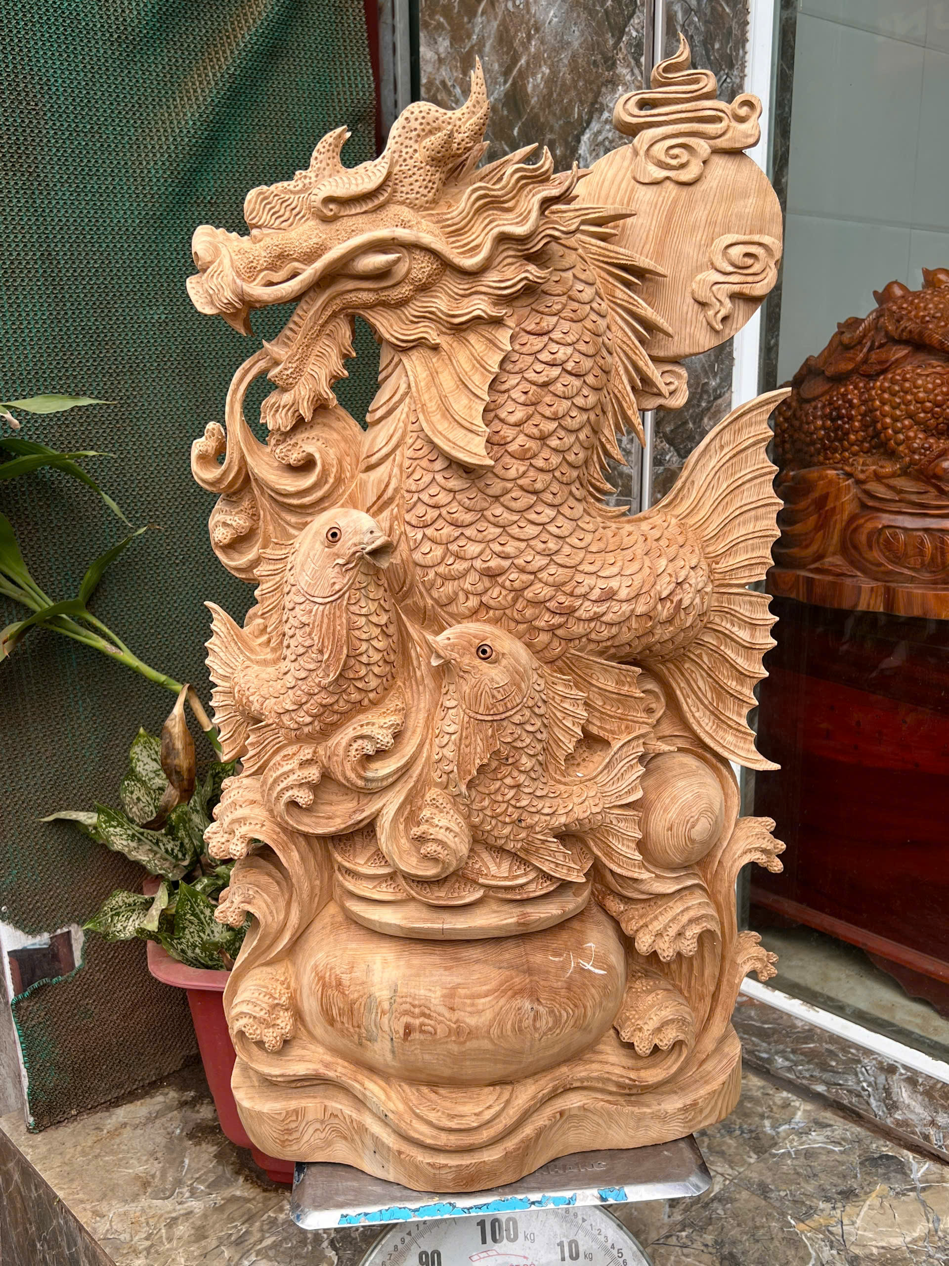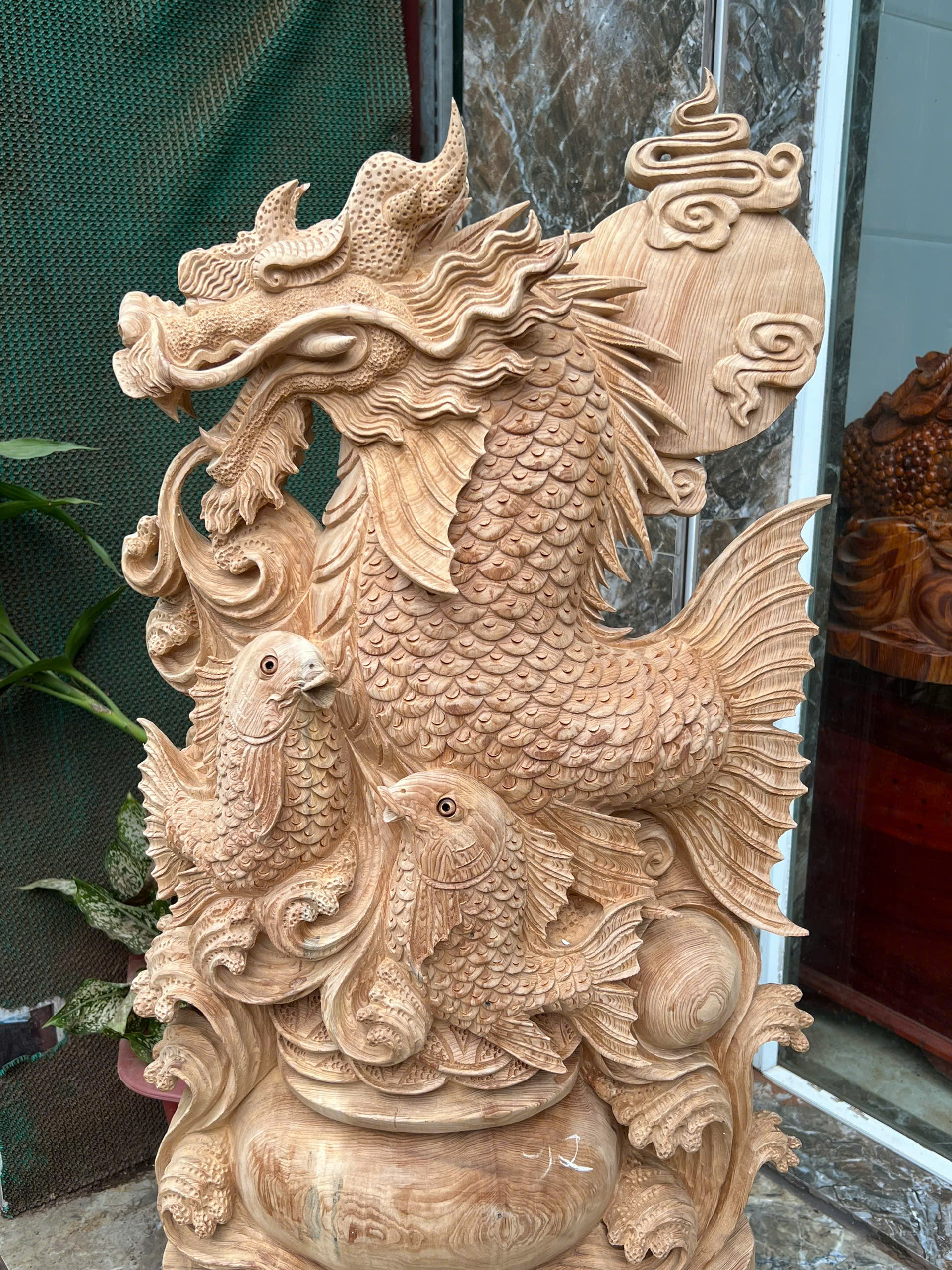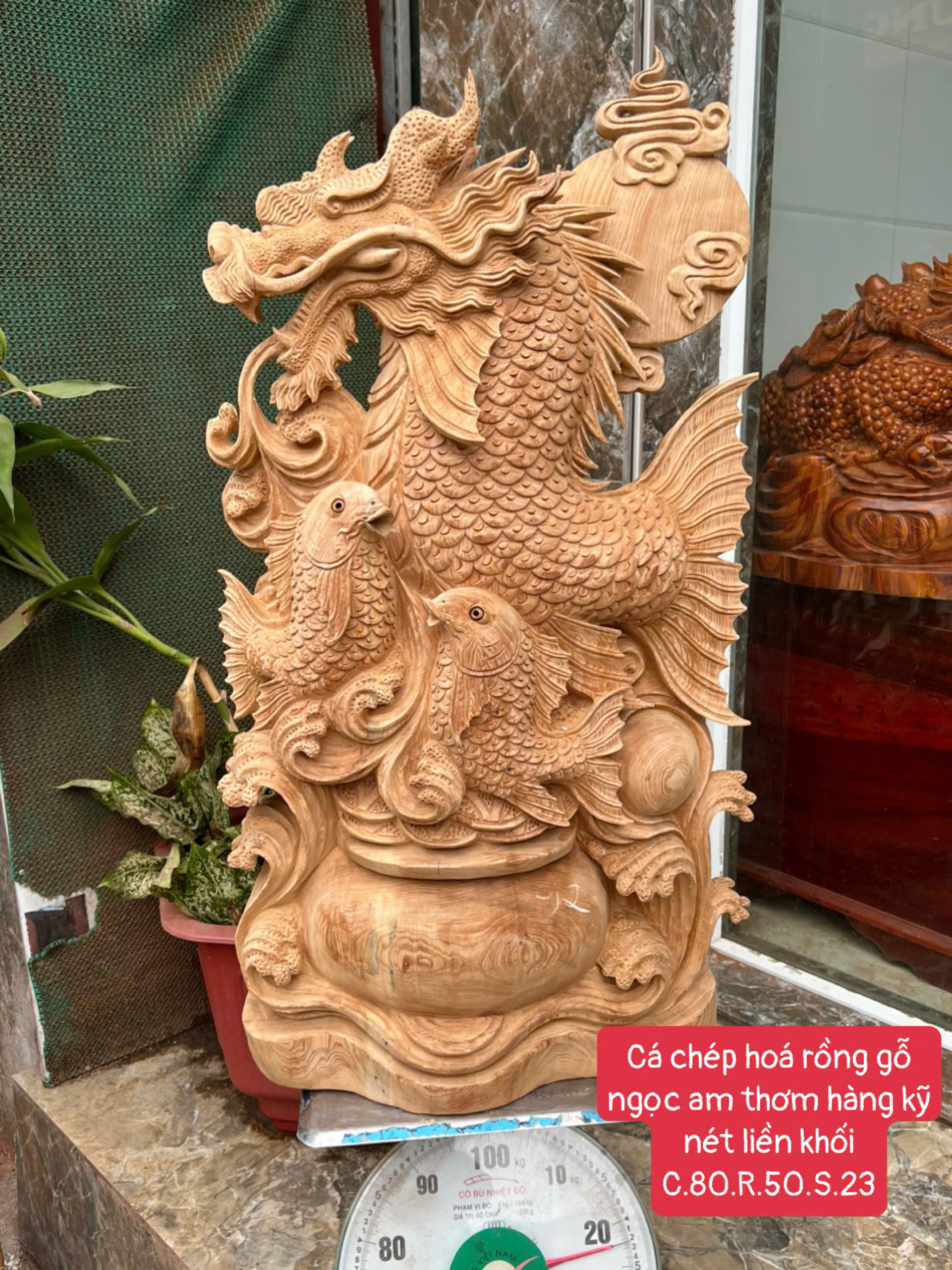 Cá chép hoá rồng gỗ ngọc am thơm ngát hàng kỹ nét liền khối