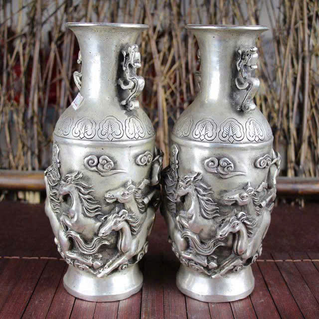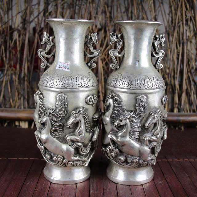 Cặp Bình Bạc cũ Bát Mã sưu tầm