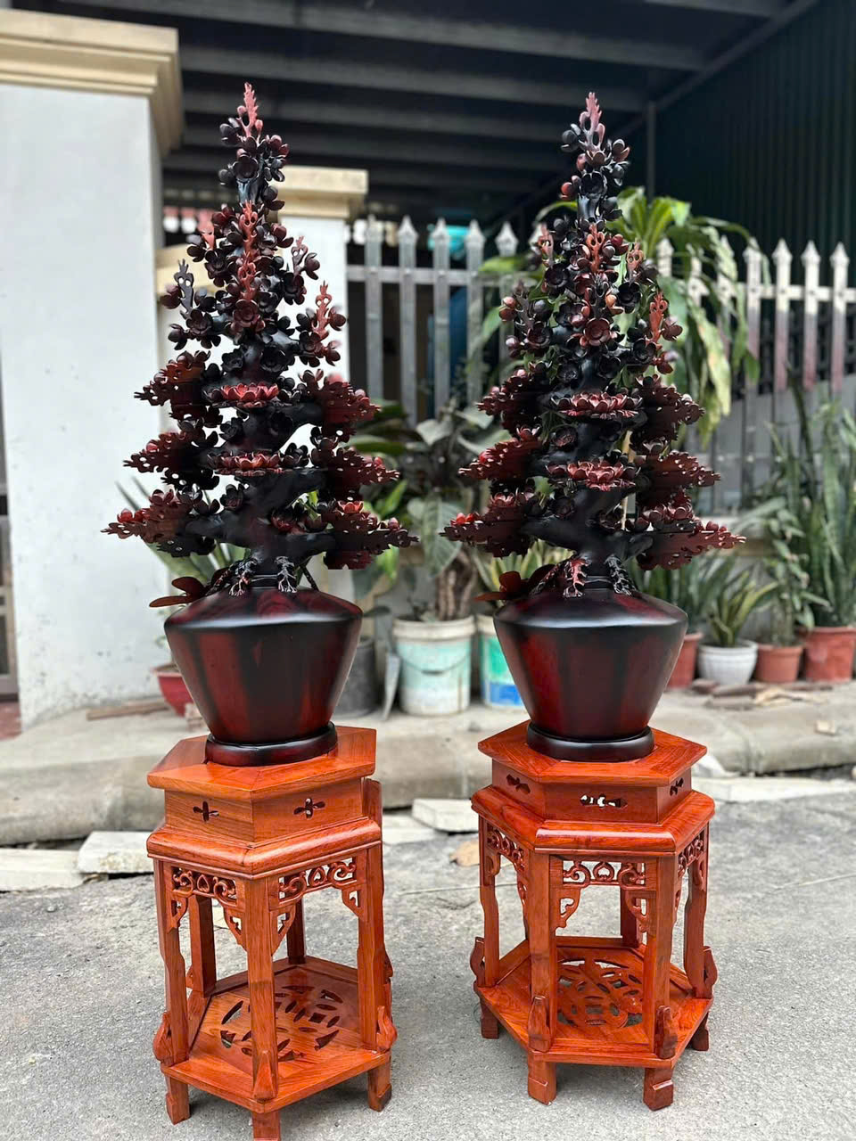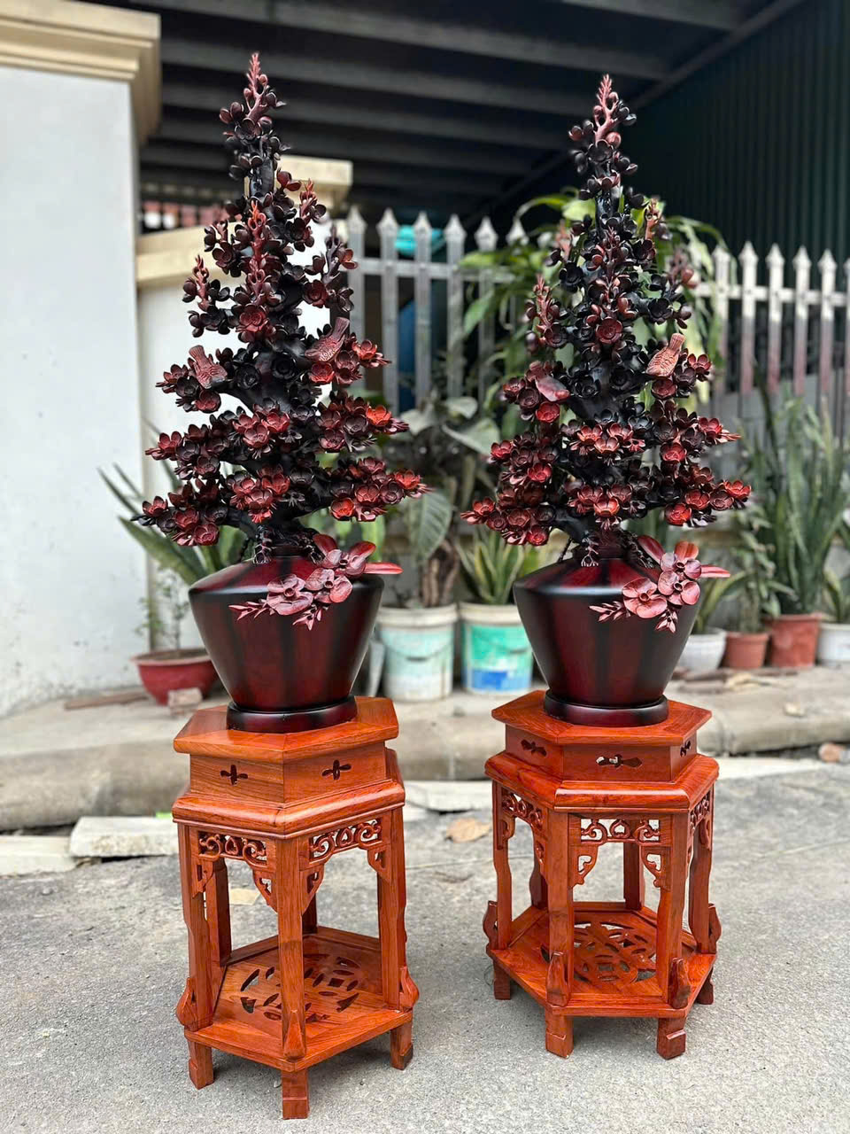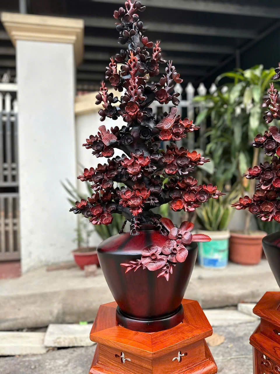 Cặp bình mai gỗ trắc việt cao 1m ngang 48 sâu 35 kích thước k tính đôn và giá cũng k tính đôn