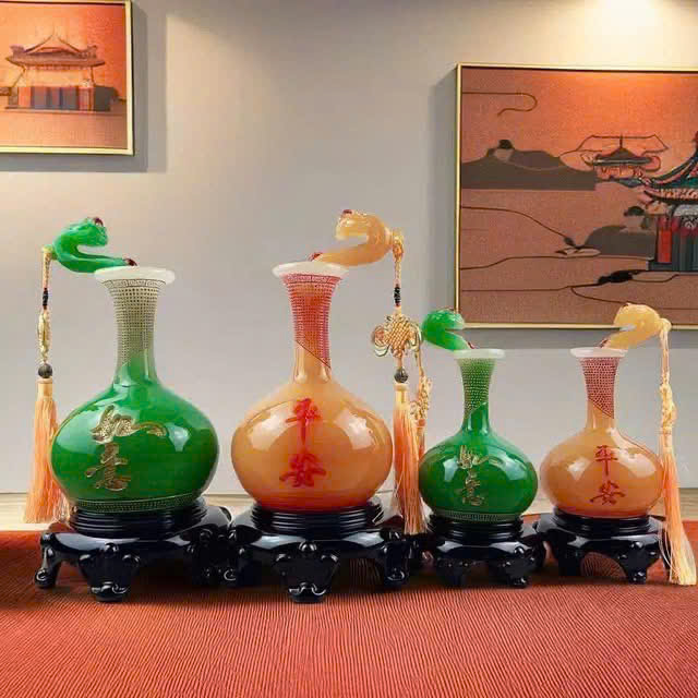 - Chiêu tài: Với thiết kế đặc trưng (miệng loe, cổ hẹp, thân phình to), cặp bình ngọc được tin là giúp thu hút vượng khí và năng lượng tích cực vào nhà.