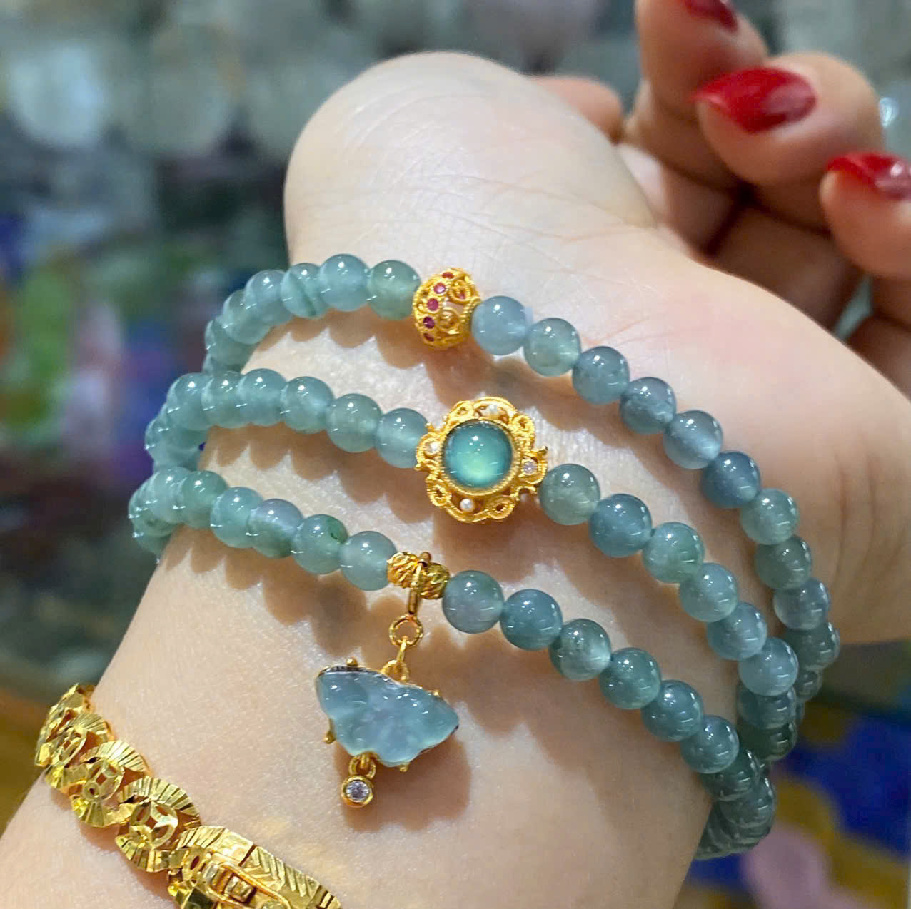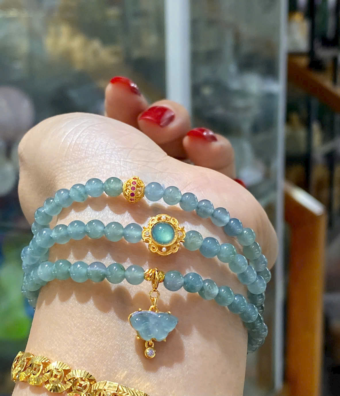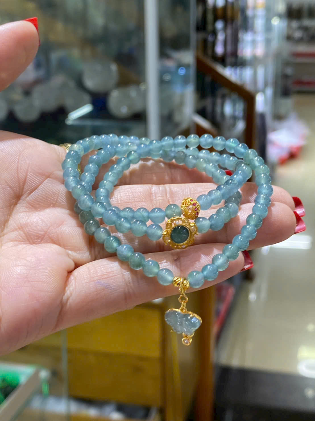 Vòng tay chuỗi Lam Thiên Không (thường là Cẩm Thạch Jadeite hoặc Lam Ngọc thiên nhiên) có tác dụng phong thủy mang lại bình an, may mắn, xua đuui tà khí, cân bằng cảm xúc, thu hút tài lộc và bảo vệ chủ nhân, đồng thời hỗ trợ sức khỏe tinh thần (giảm căng thẳng) và thể chất (hỗ trợ hệ miễn dịch, giảm đau khớp) nhờ năng lượng tích cực từ đá.