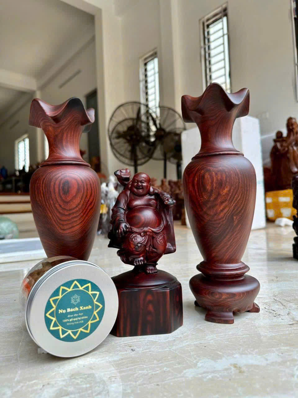 Combo gỗ trắc Tặng hộp nụ trầm bách xanh Kt lục bình cao 30cm Tượng cao 20cm