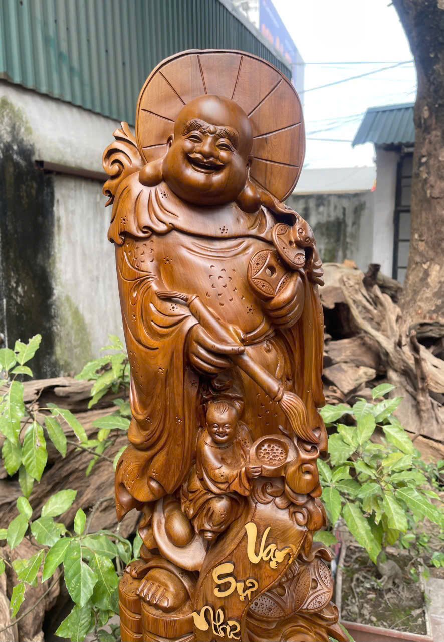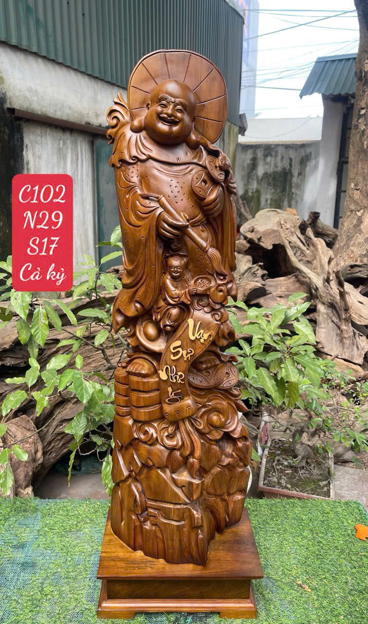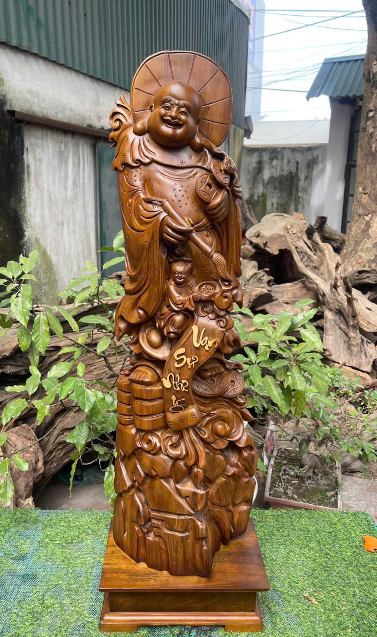 Cụ di lặc nhất phúc gỗ Bách xanh mộc châu liền khối, gỗ già siêu dầu thơm ngá