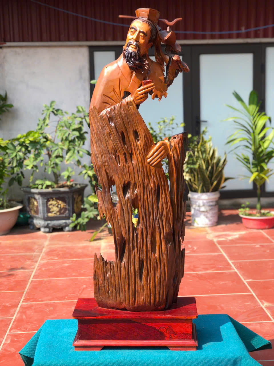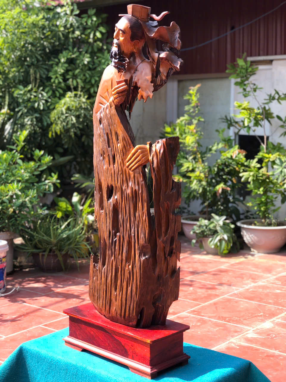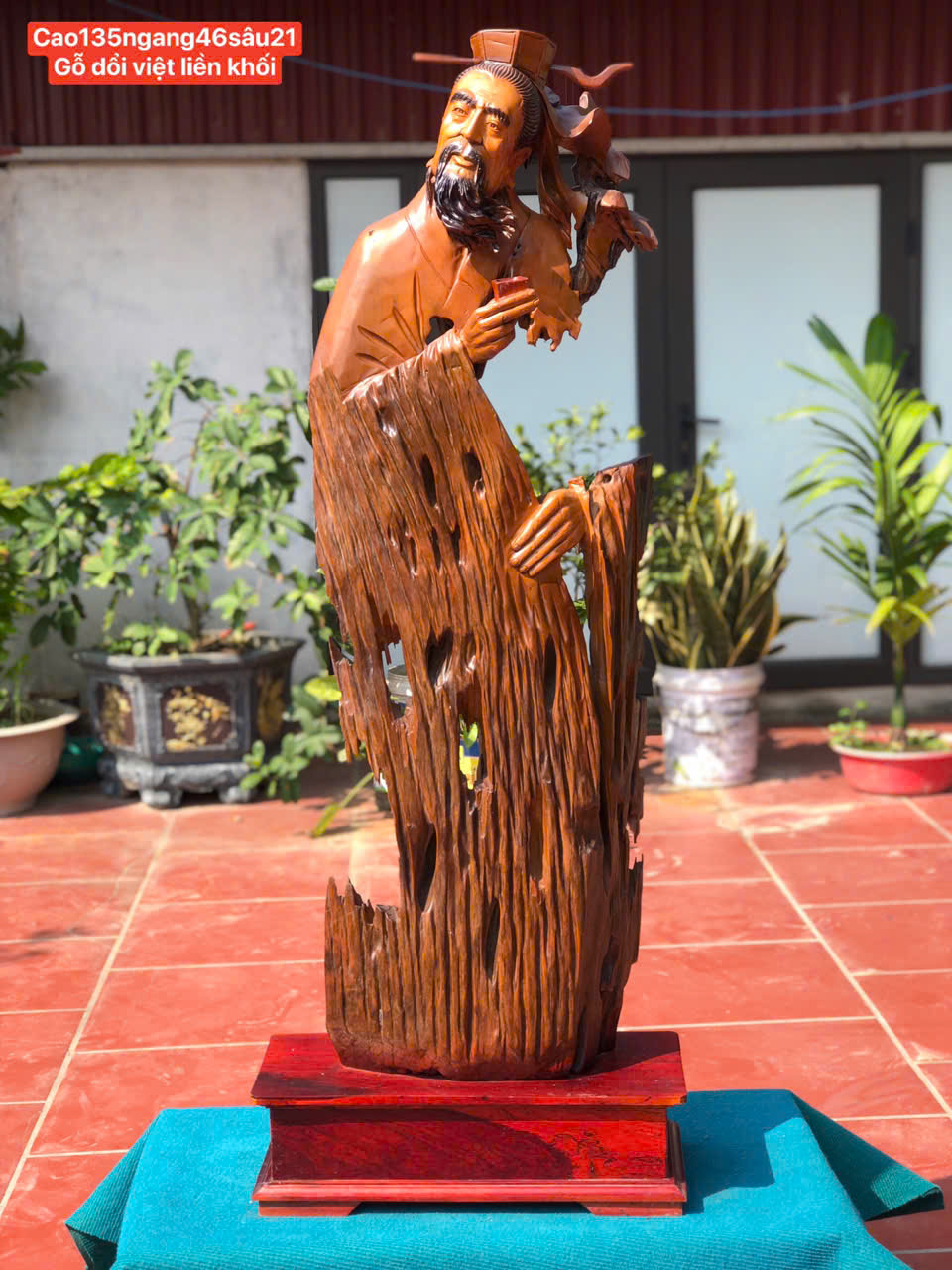 Cụ thẩm trà gỗ dổi việt liền khối hàng cao to đẹp phiêu – bao síp