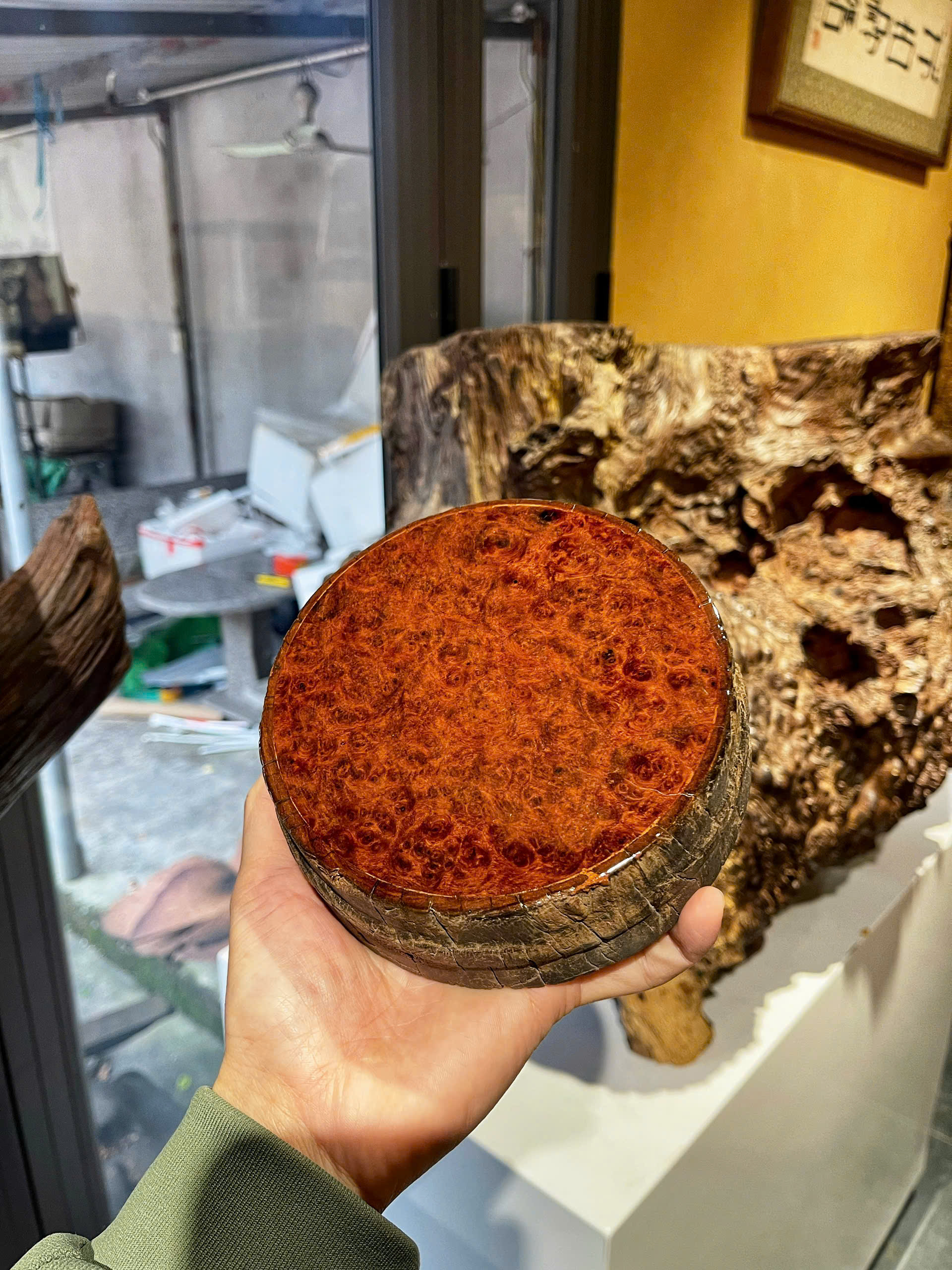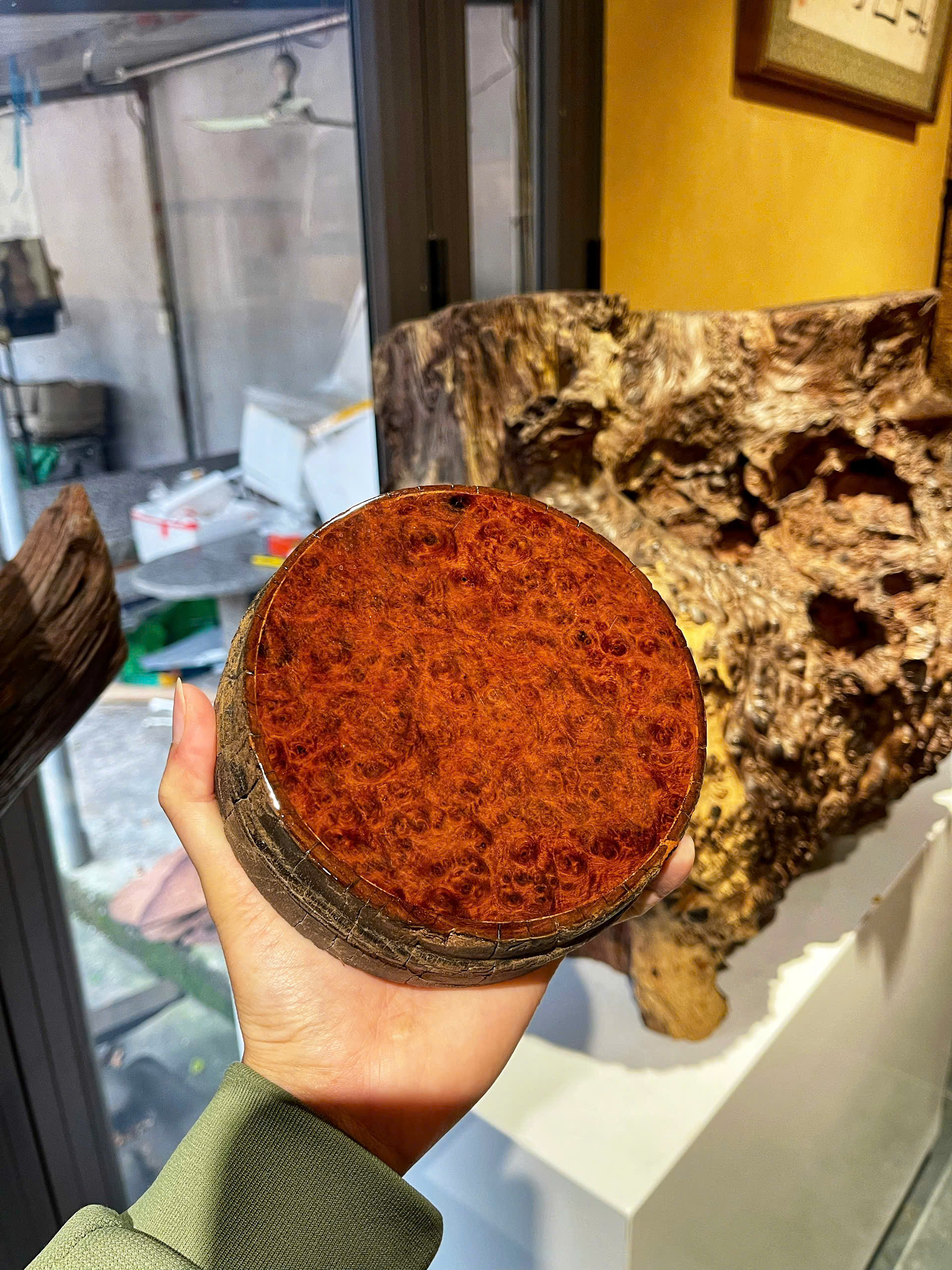 • Chất liệu gỗ nu hương quý hiếm (tự nhiên) với vân xoáy độc đáo, thể hiện sự tinh tế, đẳng cấp.