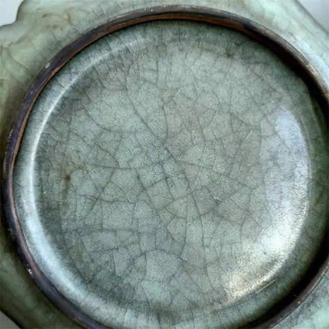 - Men và màu sắc: Điểm nhấn chính của đĩa là lớp men dày, mờ đục với màu xanh ngọc nhạt (celadon green) hoặc xám xanh. Bề mặt men phủ đầy các vết rạn nứt li ti tự nhiên (crackle glaze) màu nâu, vàng hoặc xám, tạo nên vẻ đẹp cổ kính và có chiều sâu. Kỹ thuật men rạn này là một đặc điểm nổi tiếng của các dòng gốm hoàng gia Trung Quốc như gốm Quan (Guan ware) và gốm Ca (Ge ware).