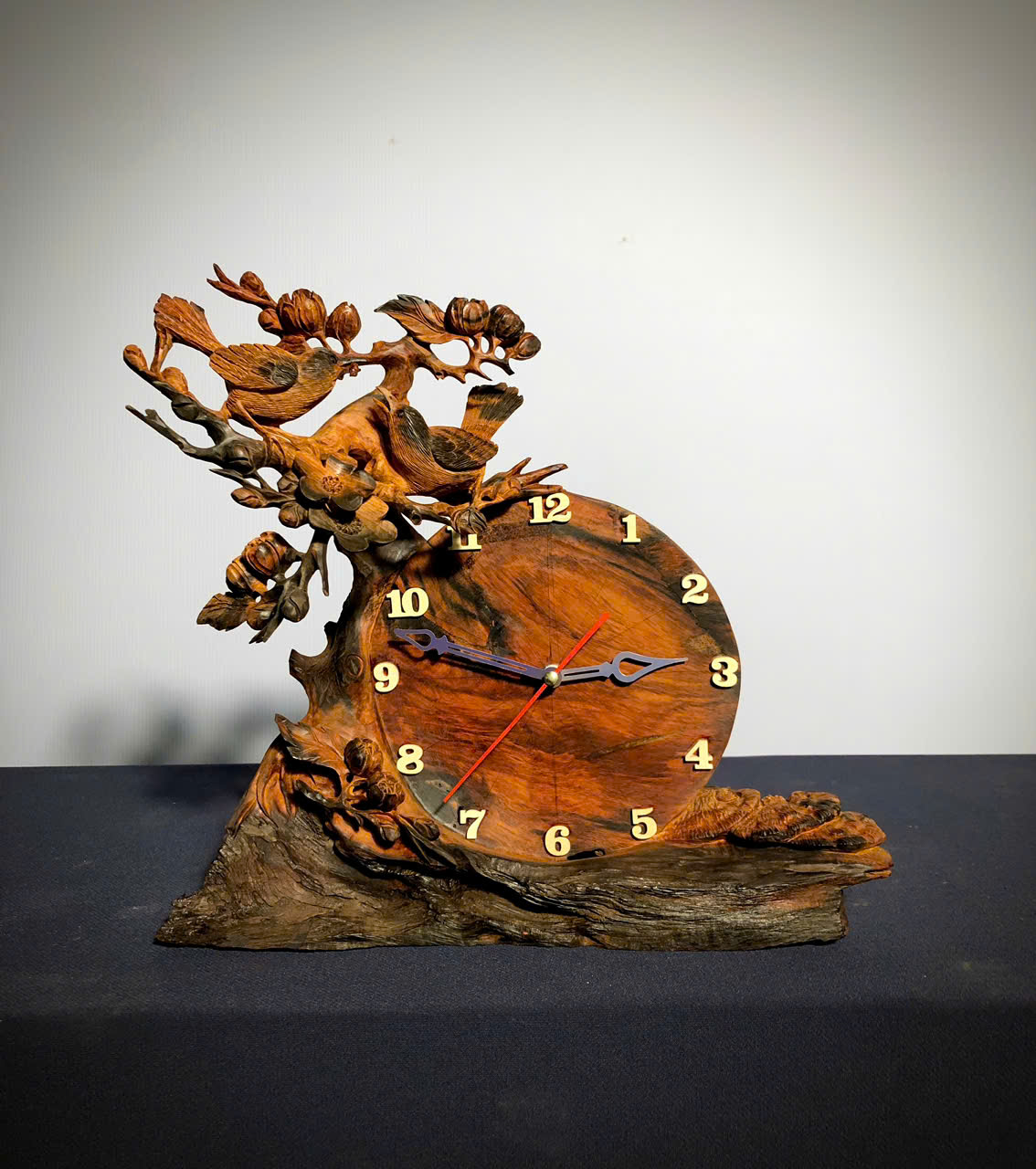Đồng hồ chim mai gỗ trắc viêth liền khối