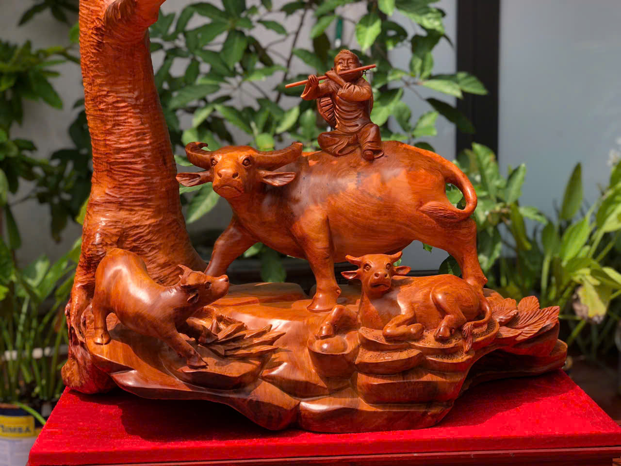 Gia đình trâu gỗ hương ta hàng kĩ gỗ đẹp vân gỗ chun sụn tự nhiên