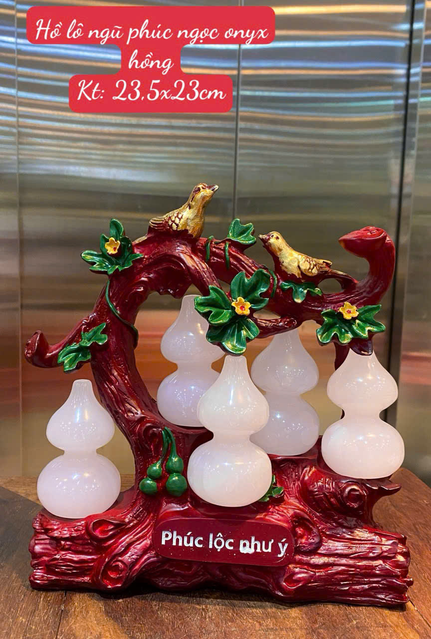 Hồ lô ngũ phúc ngọc onyx hồng Kt: 23,5x23cm