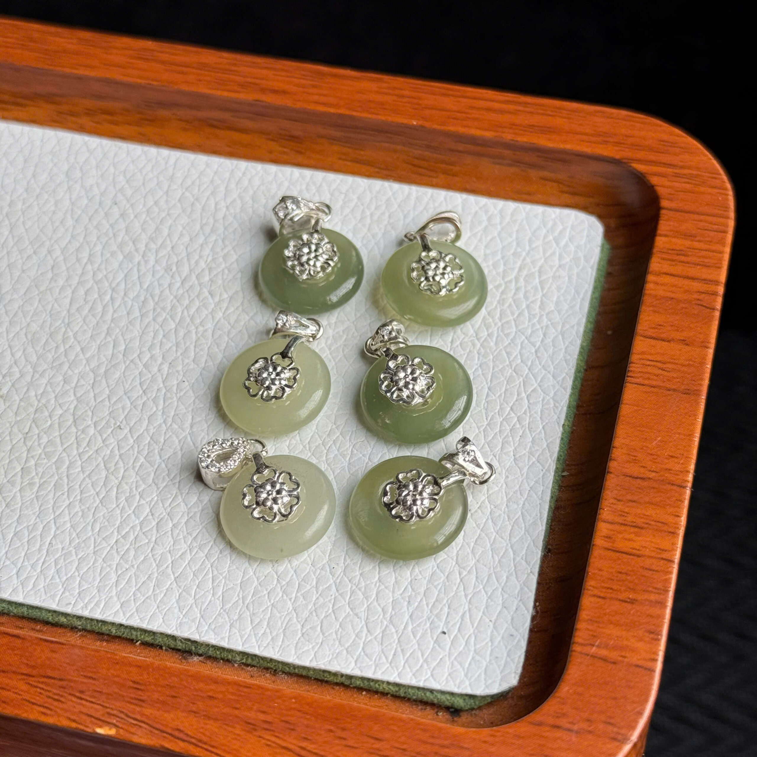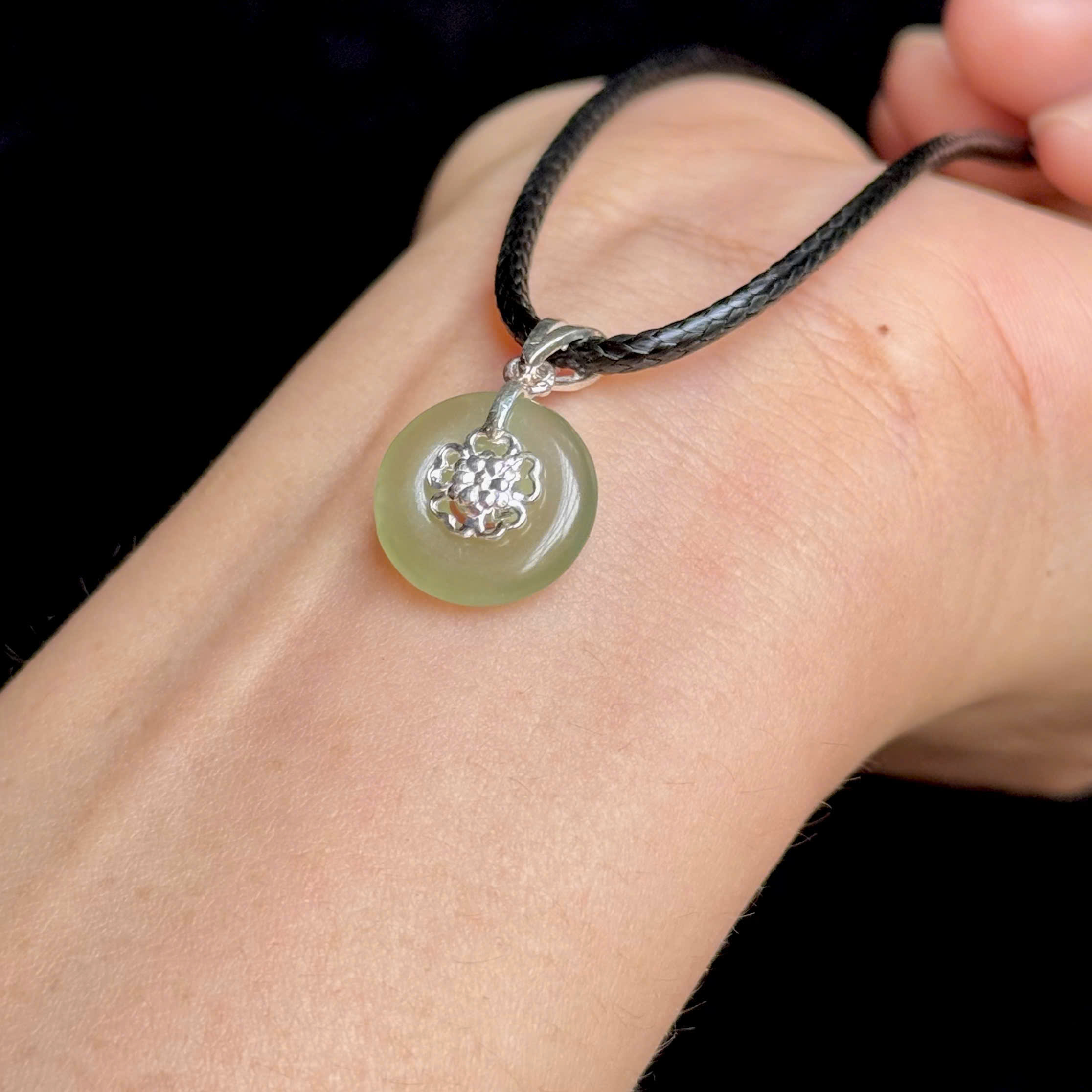 Mặt điếu ngọc Hoà Điền đk 1,35cm , móc bạc S 1825