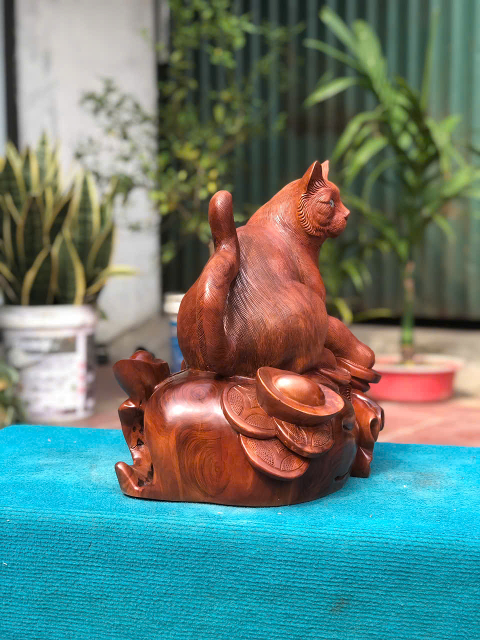 Mèo gỗ hương ta liền khối hàng kĩ đẹp