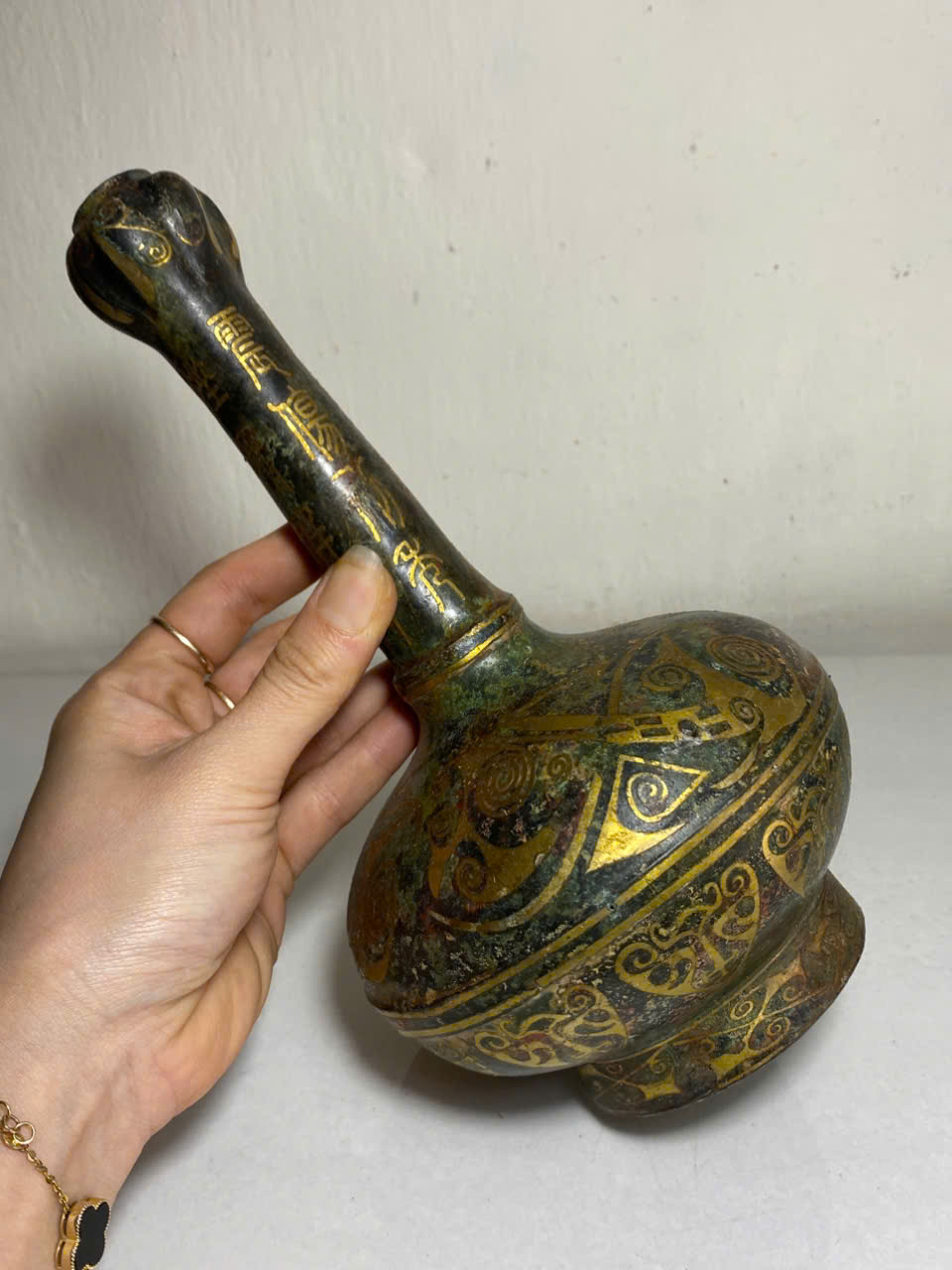 NẬM ĐỒNG XƯA KHẢM V-ÀNG