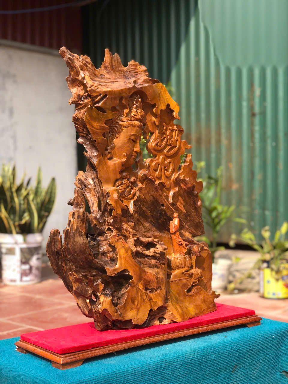 Nhất tâm bái phật gỗ dổi thế lũa đẹp tự nhiên có xông trầm – bao síp