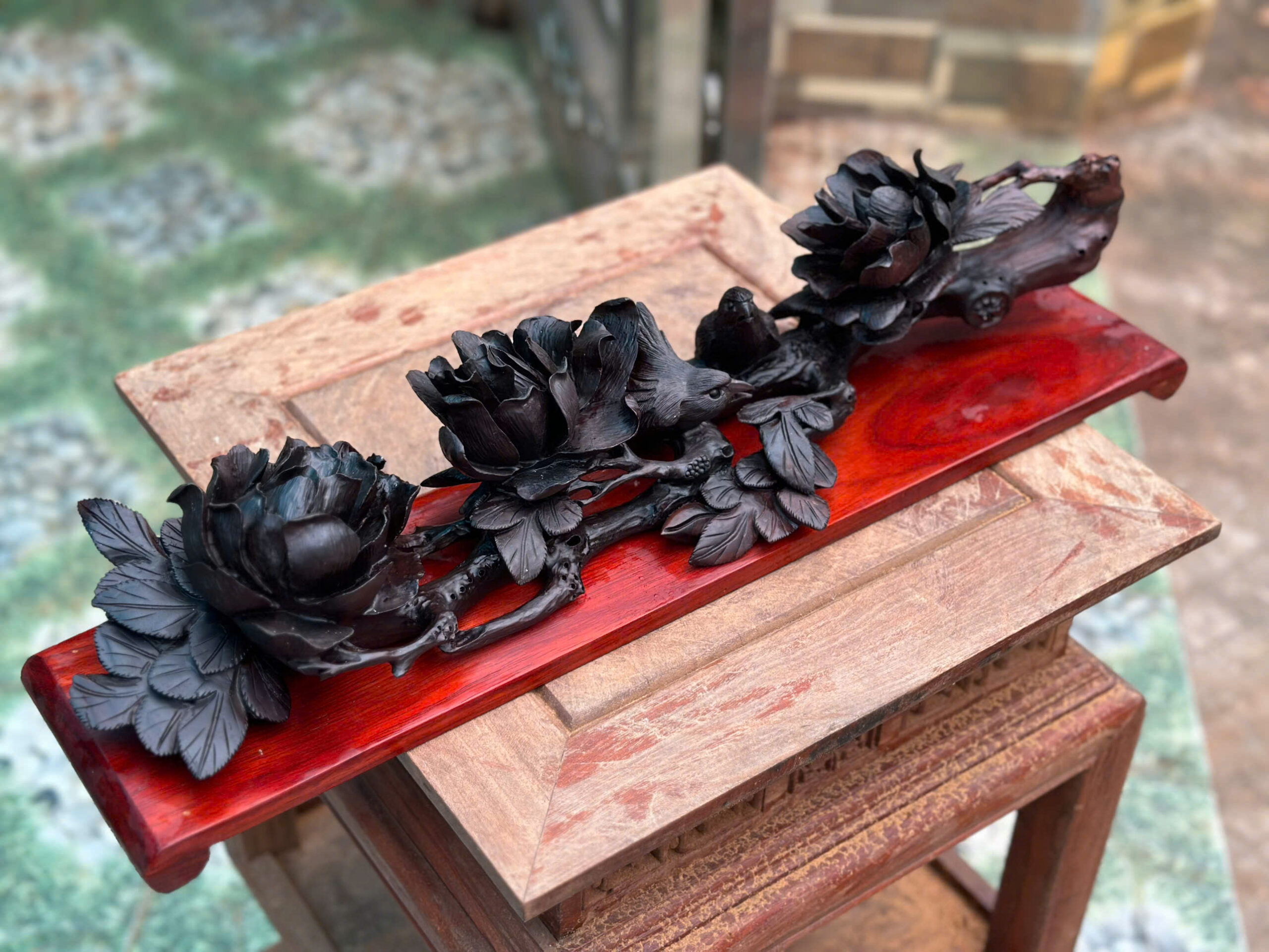Tác dụng của vật phẩm Như Ý Hoa Mẫu Đơn Uyên Ương làm từ gỗ trắc là sự kết hợp hoàn hảo giữa phong thủy, tình duyên và sự sung túc: mang lại may mắn, tài lộc, quyền lực, củng cố hạnh phúc gia đình, hóa giải điềm xấu, và tăng cường vận khí tích cực cho không gian sống, đặc biệt tốt for tình yêu đôi lứa và sự viên mãn hôn nhân nhờ biểu tượng mẫu đơn (phú quý) và uyên ương (tình yêu).