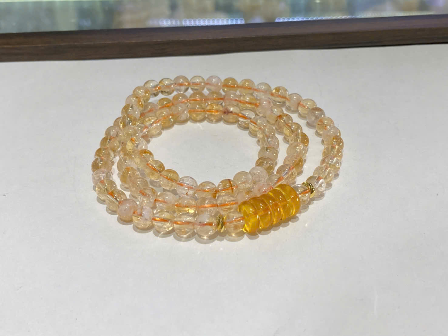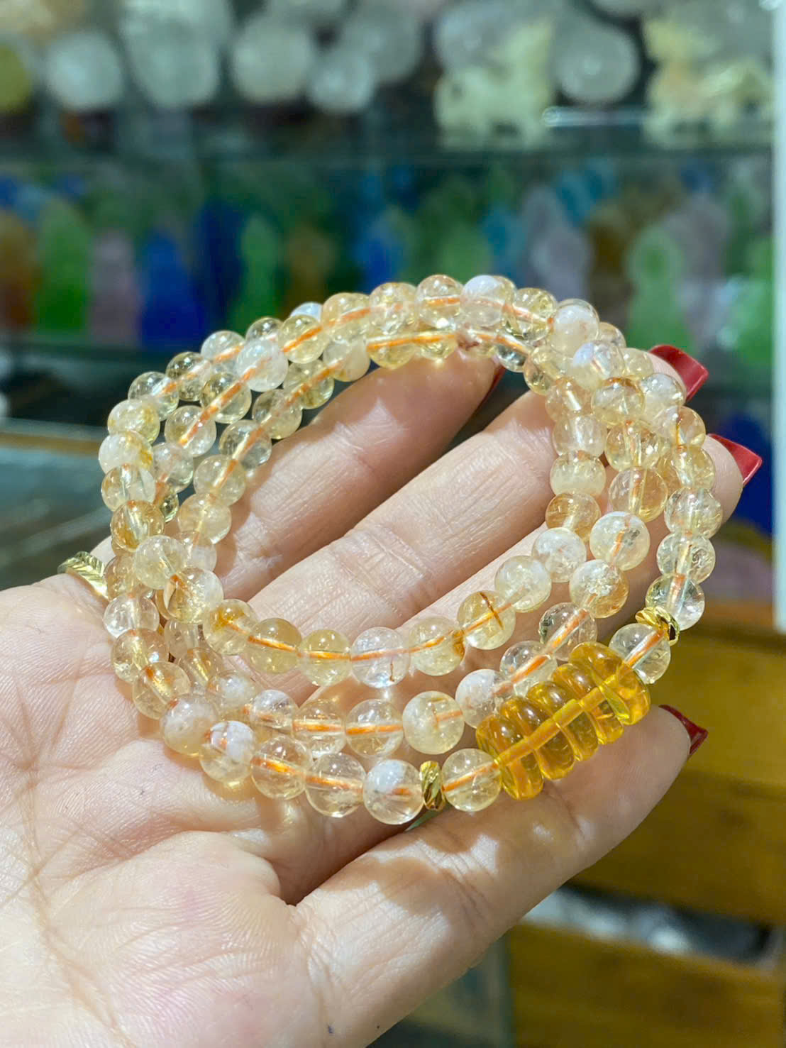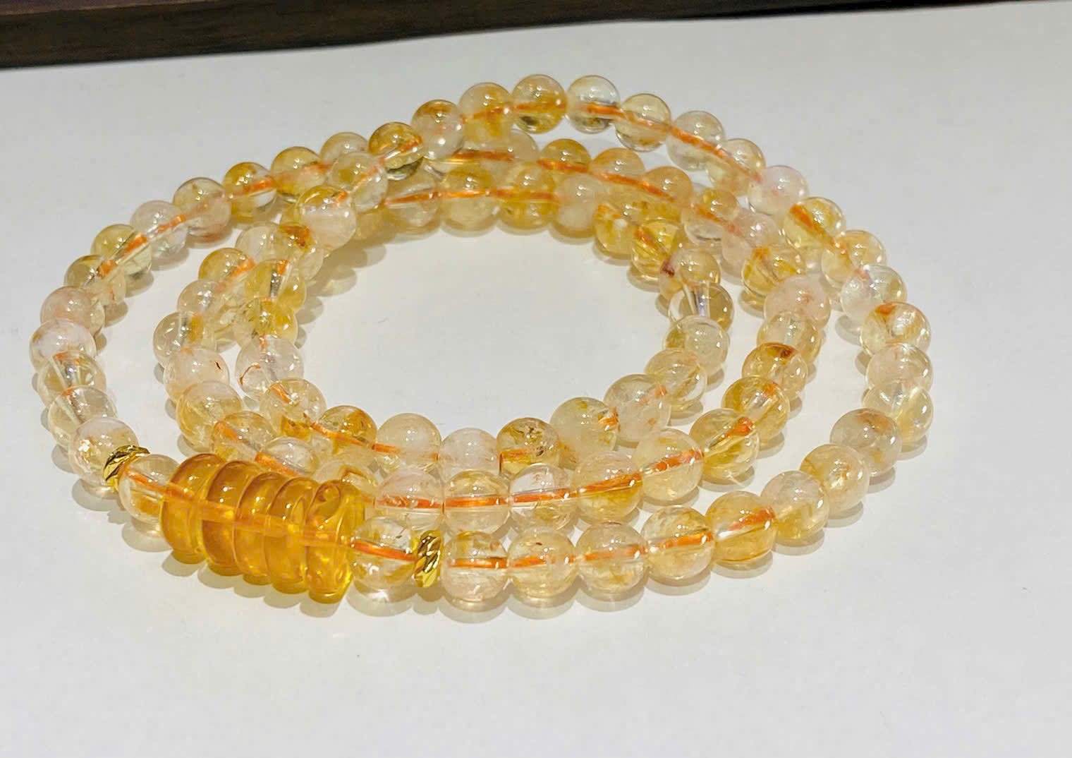 Vòng tay Thạch anh vàng ưu linh mix Ngũ điếu Hổ phách kết hợp năng lượng thu hút tài lộc, may mắn, sự sáng suốt của thạch anh vàng và ngũ điếu (cân bằng ngũ hành) cùng sự ấm áp, bảo vệ, chữa lành của hổ phách, mang lại bình an, cải thiện sức khỏe, hỗ trợ kinh doanh, tăng cường các mối quan hệ và sự tự tin cho người đeo.