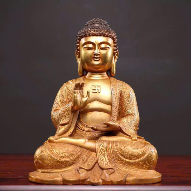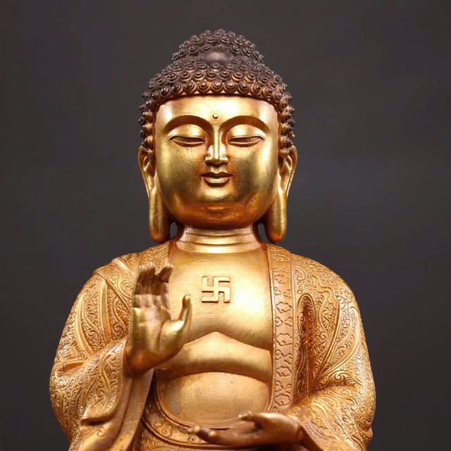 - Chữ Vạn: Đặc điểm nổi bật nhất của tượng Phật A Di Đà là chữ “Vạn” (卐) nằm ở giữa ngực. Đây là biểu tượng của điềm lành, may mắn và sự bảo hộ trong Phật giáo.