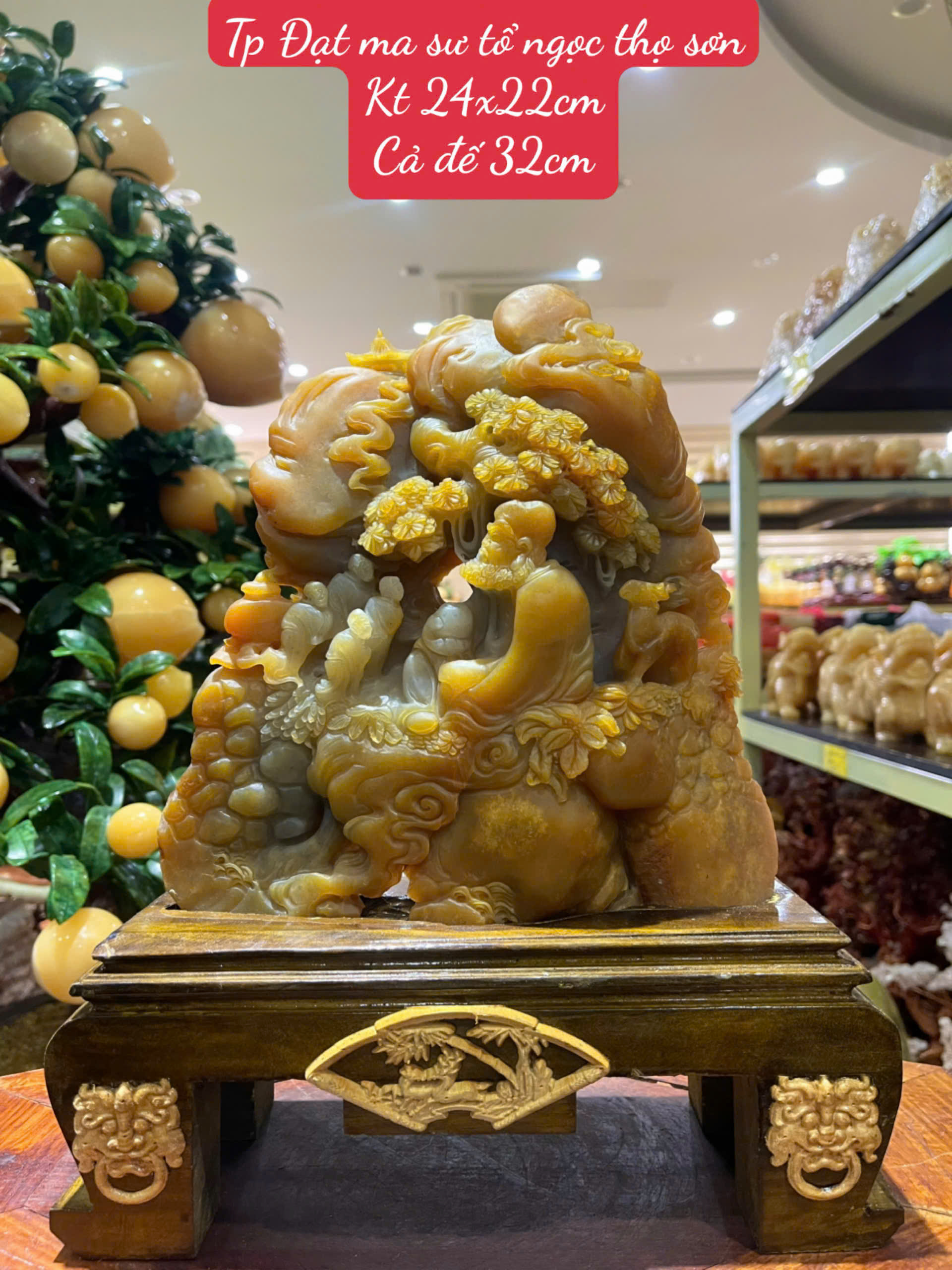 Tp Đạt ma sư tổ ngọc thọ sơn Kt 24x22cm Cả đế 32cm