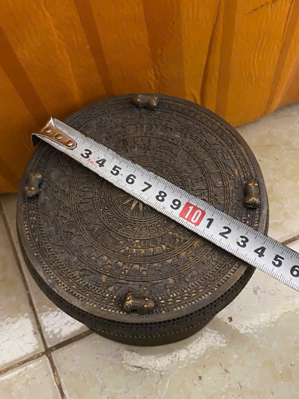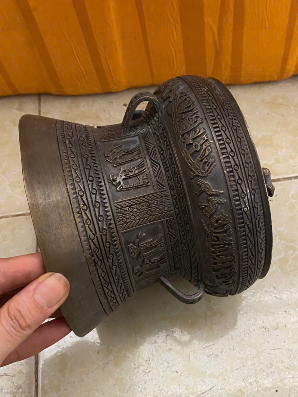 👉 Đk đáy 15cm. Tích nổi hoa văn Đông Sơn. To đẹp, 👉 Nặng 1.2kg . Đóng khung kính