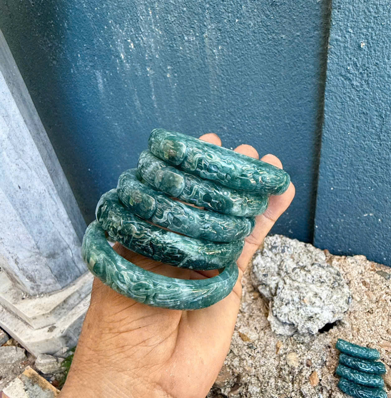 Vòng bản chạm kim long và khổng tước size 56.7-59.7mm…