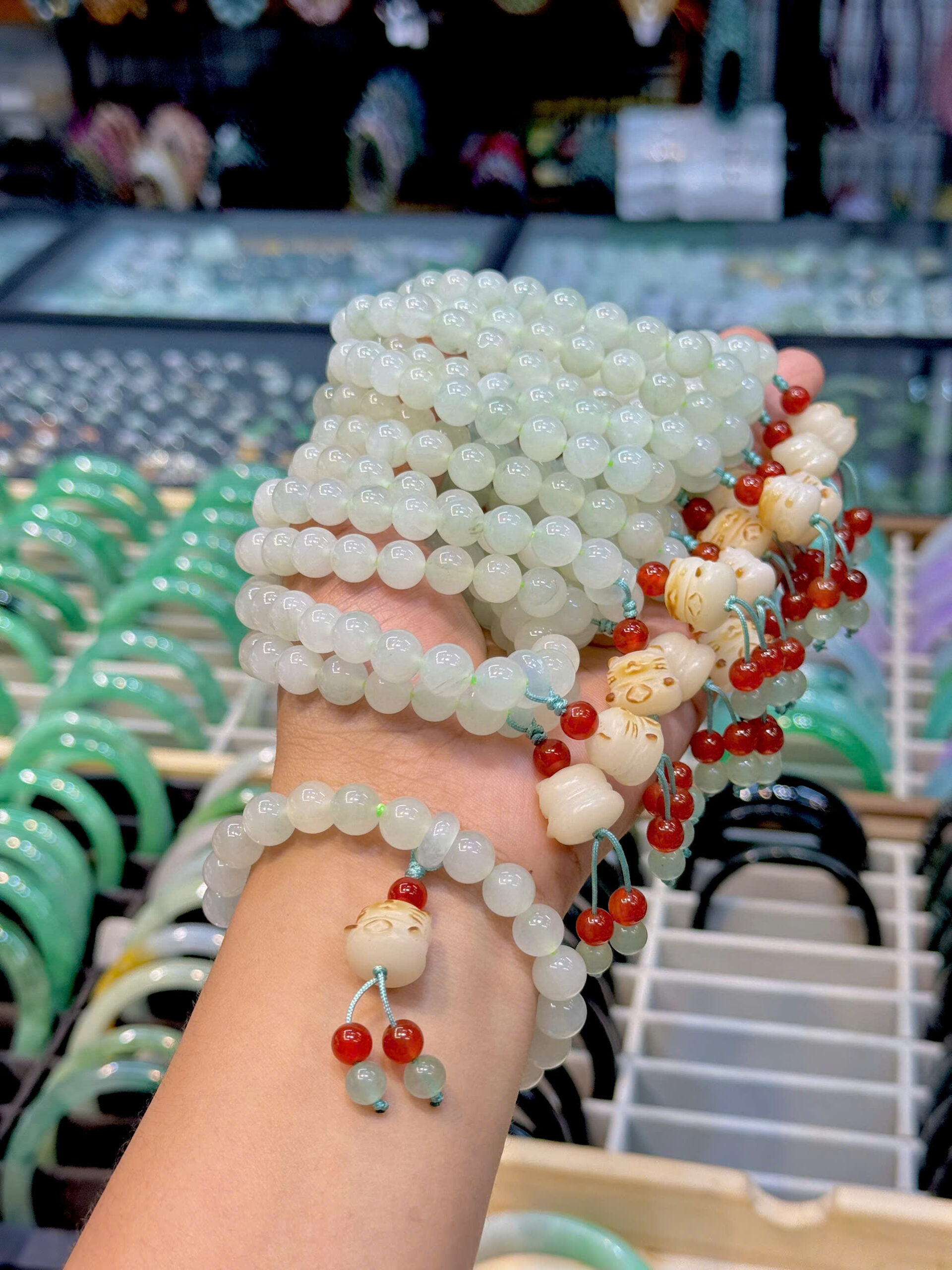 Vòng ngọc Thiên sơn 8ly mix charm