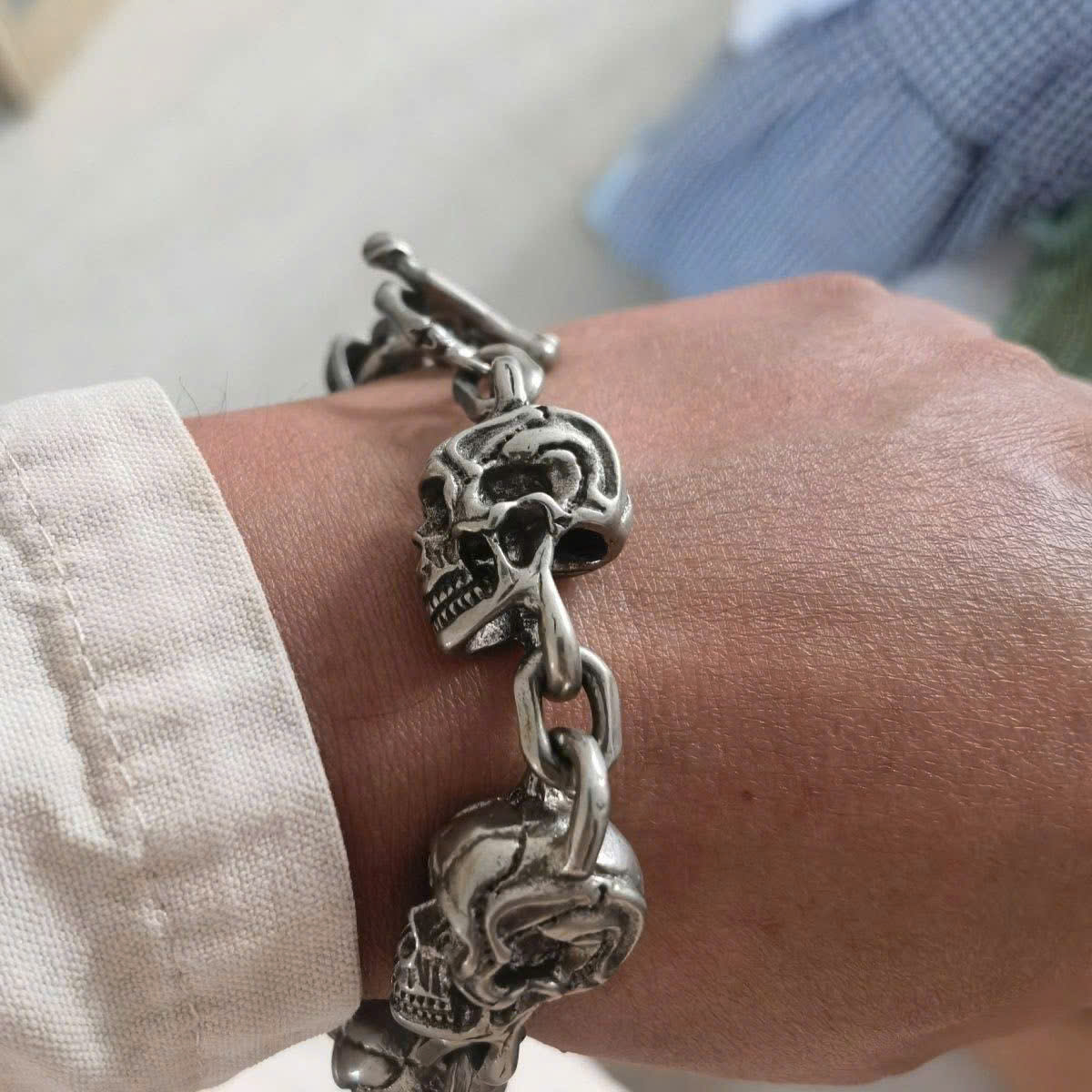 Thiết kế: Vòng tay bao gồm nhiều mắt xích hình đầu lâu nối liền nhau, tạo nên phong cách mạnh mẽ, cá tính, phù hợp cho nam giới. Phong cách: Thường gắn liền với phong cách rock, punk, gothic hoặc biker.
