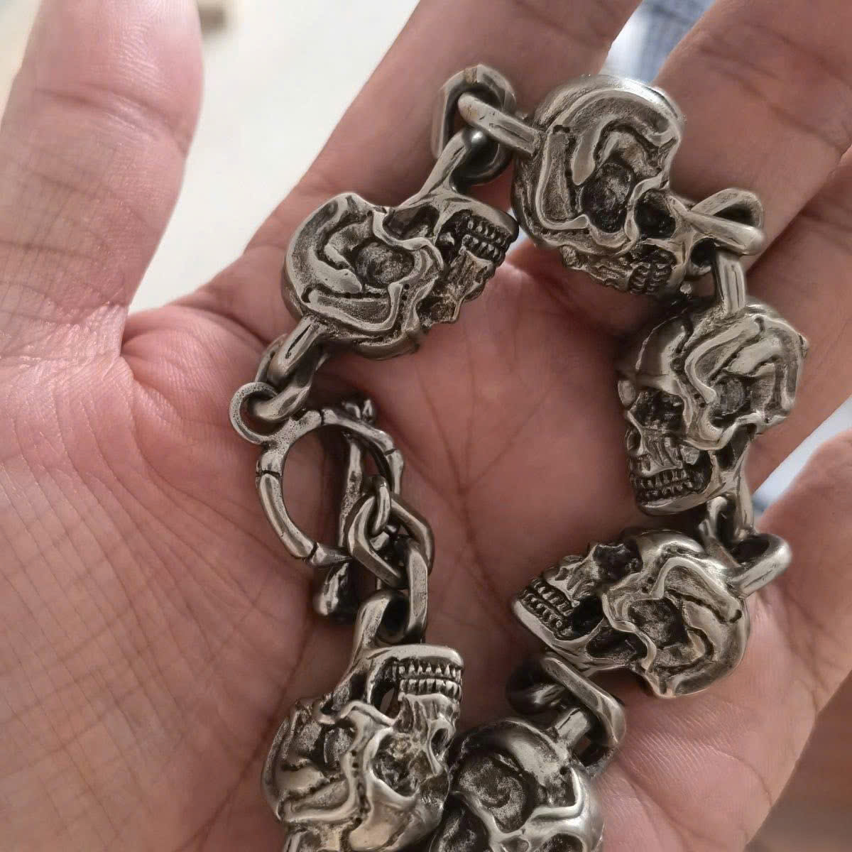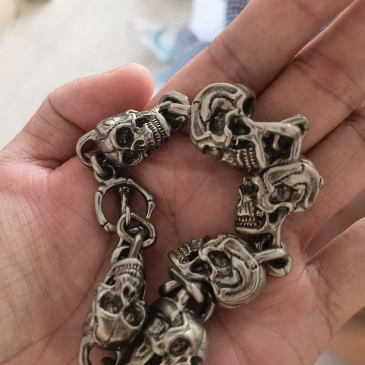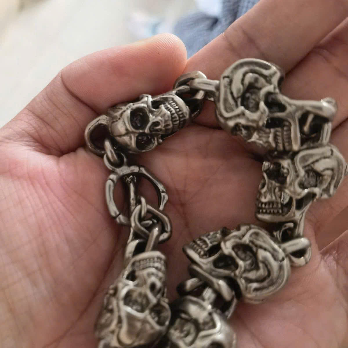 + Free ShippingThiết kế: Vòng tay bao gồm nhiều mắt xích hình đầu lâu nối liền nhau, tạo nên phong cách mạnh mẽ, cá tính, phù hợp cho nam giới. Phong cách: Thường gắn liền với phong cách rock, punk, gothic hoặc biker.