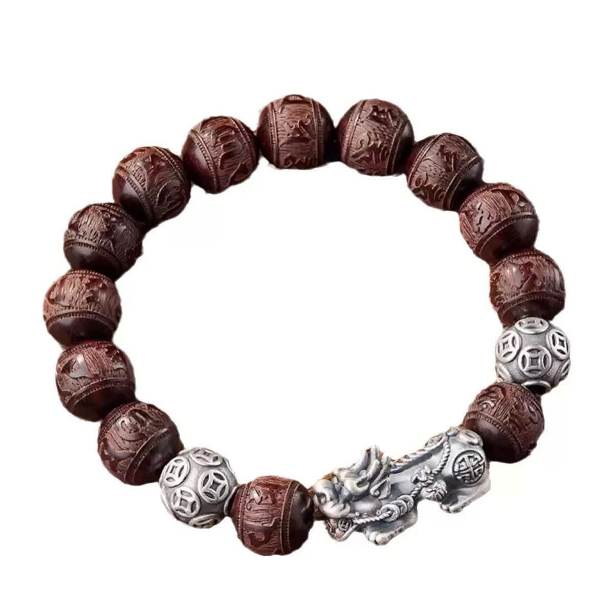 Vòng tay gỗ đàn hương mix tì hưu trạm khắc