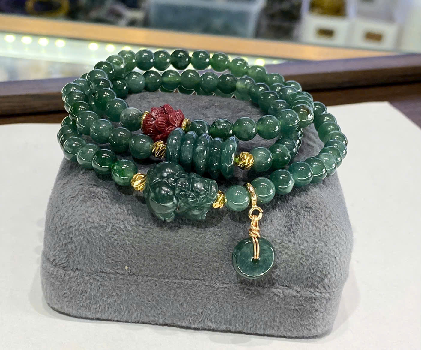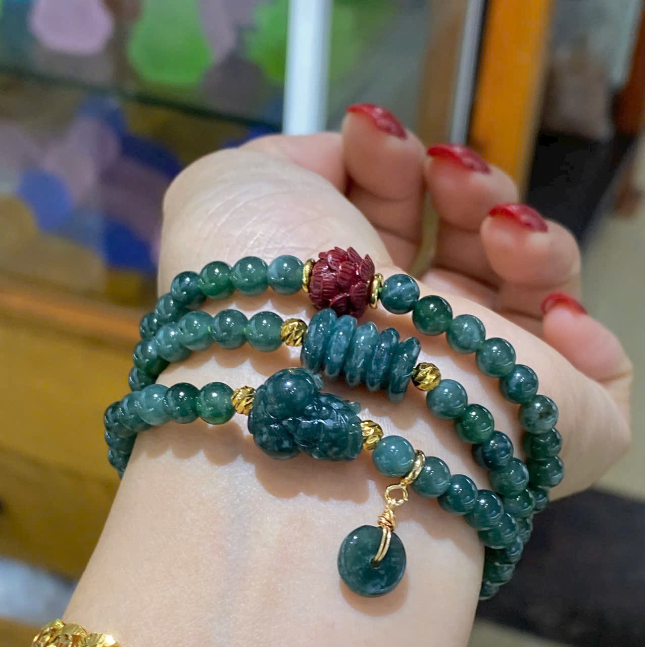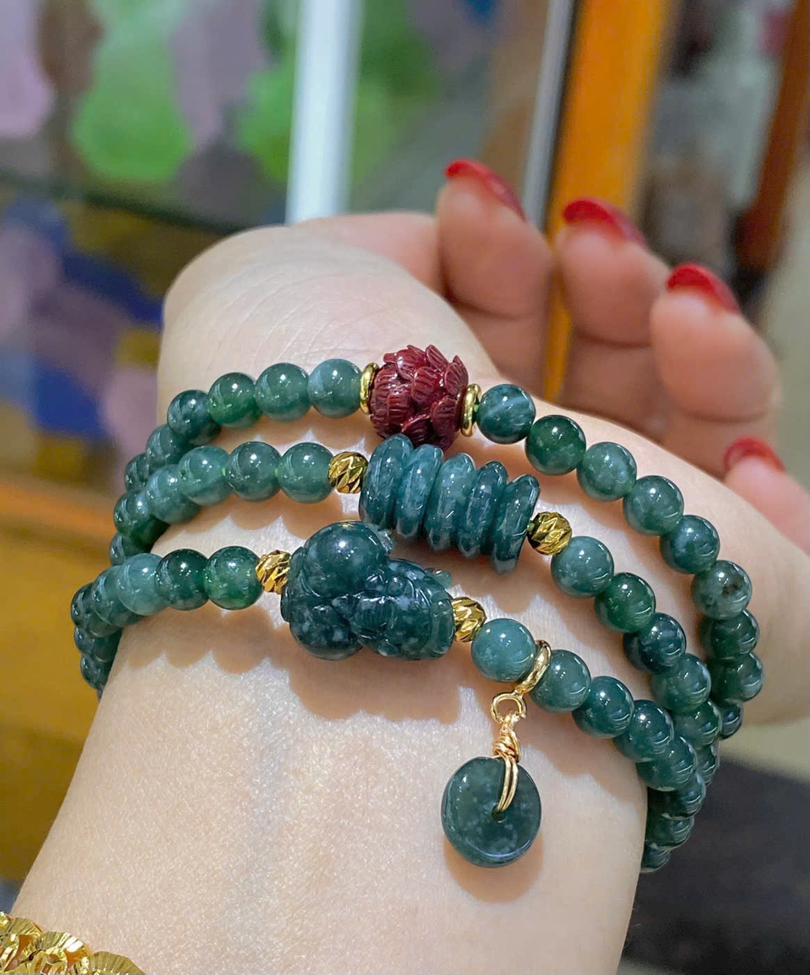 Vòng tay lam ngọc mix hoa sen + hồ ly chúa